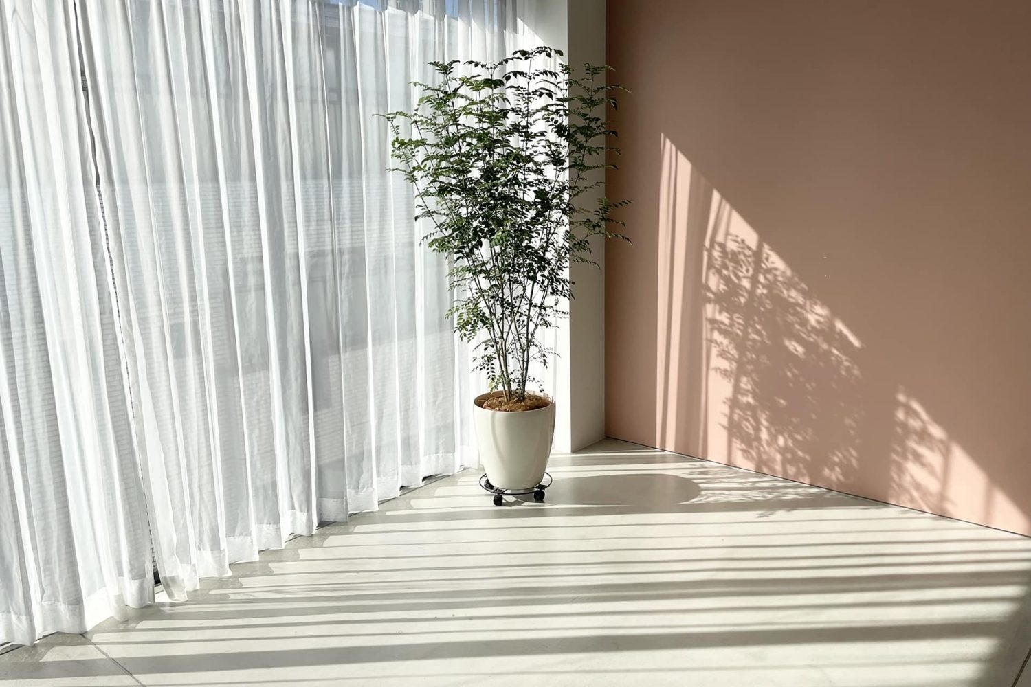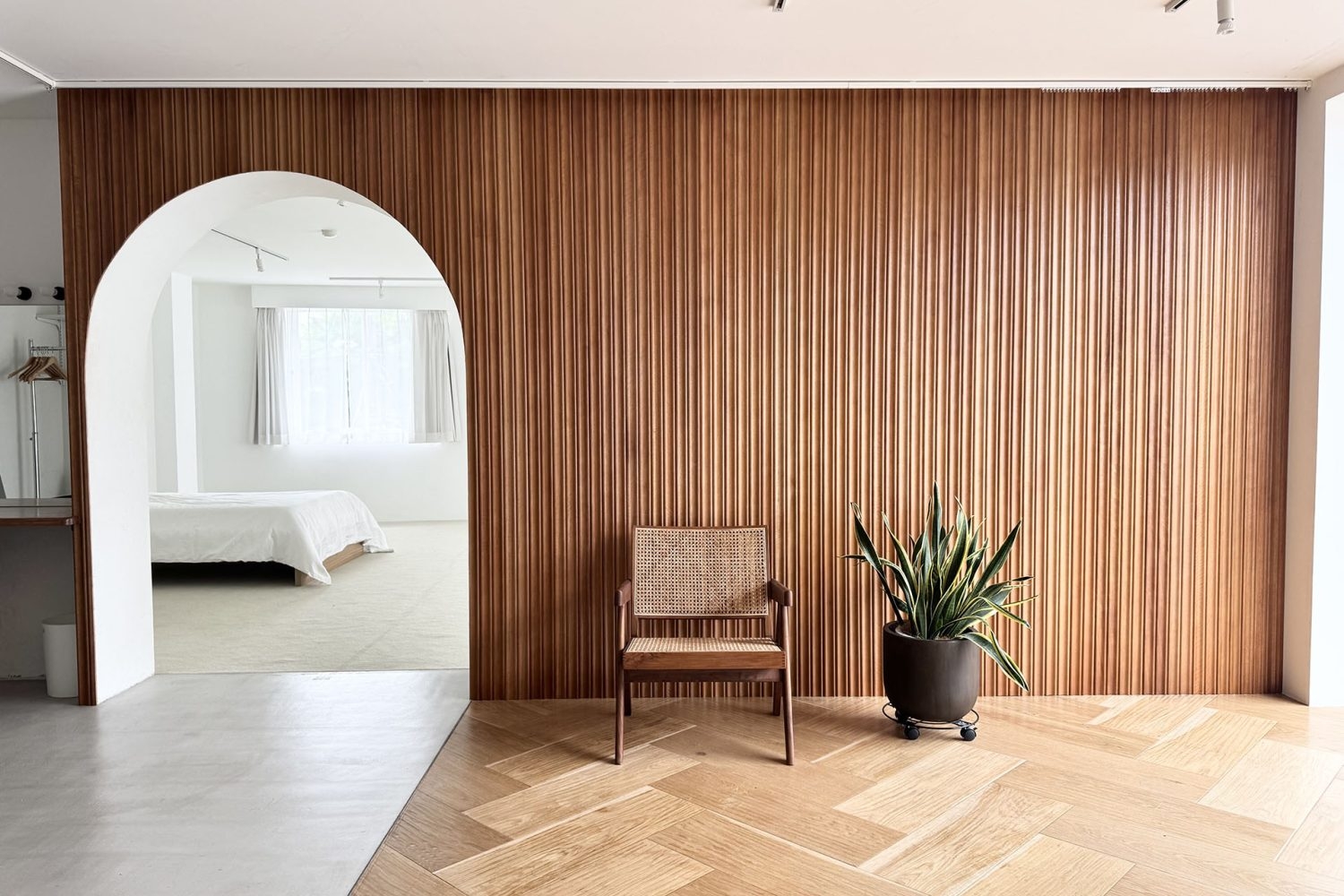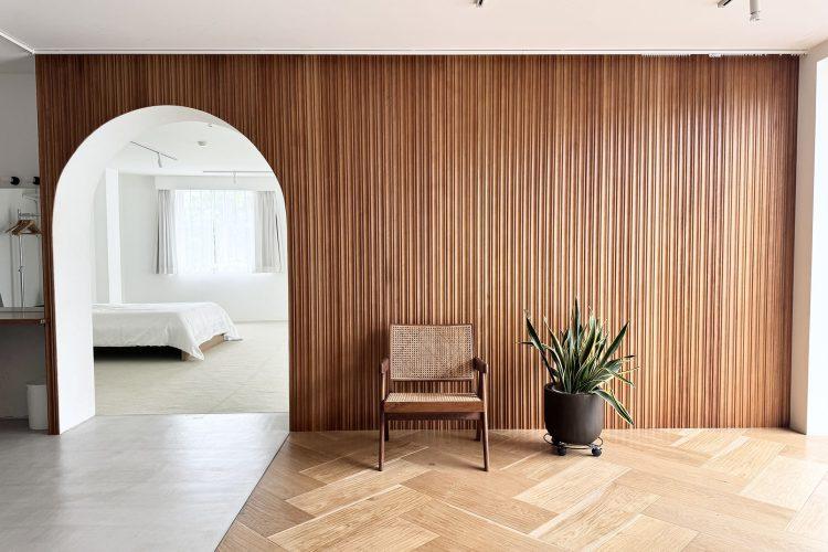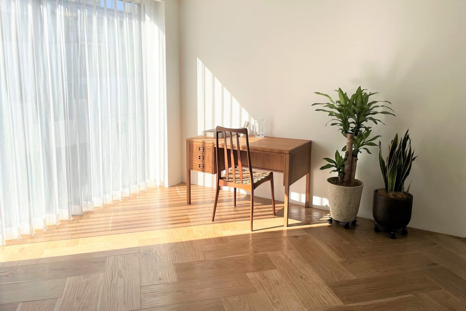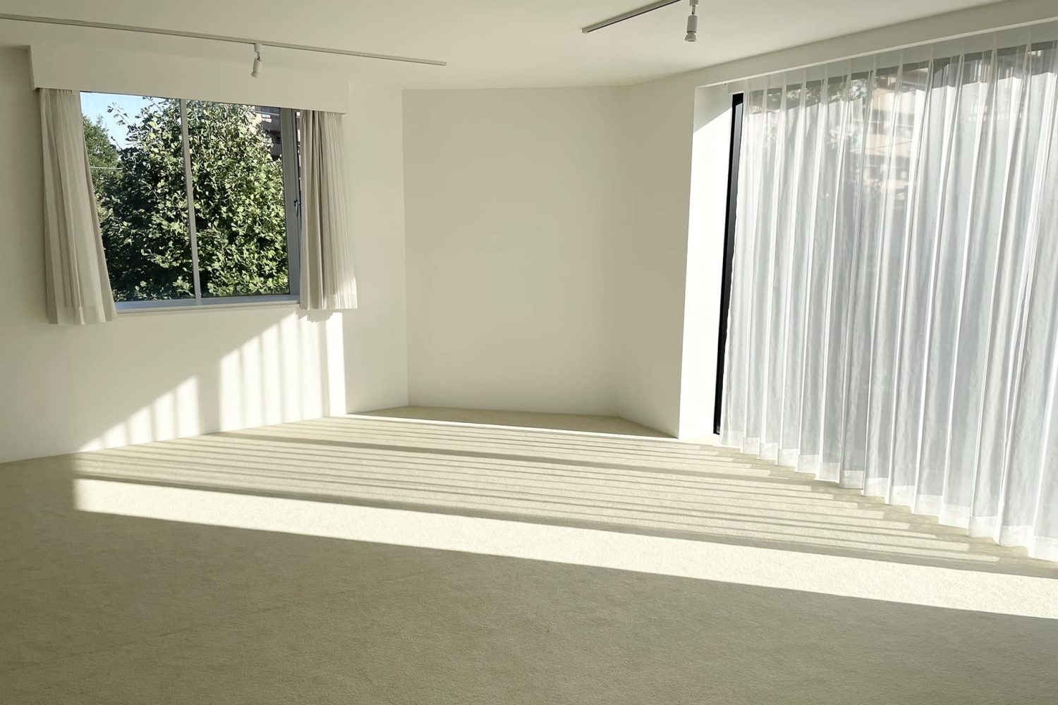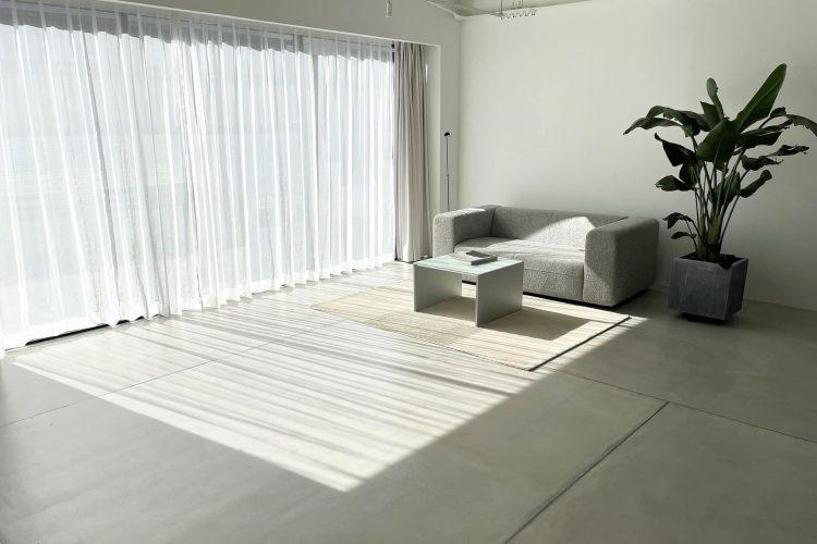 室内はモルタル、ヘリンボーン、絨毯の3つのライフスタイルに分かれており、各部屋の大きな窓から終日自然光が差し込みます。