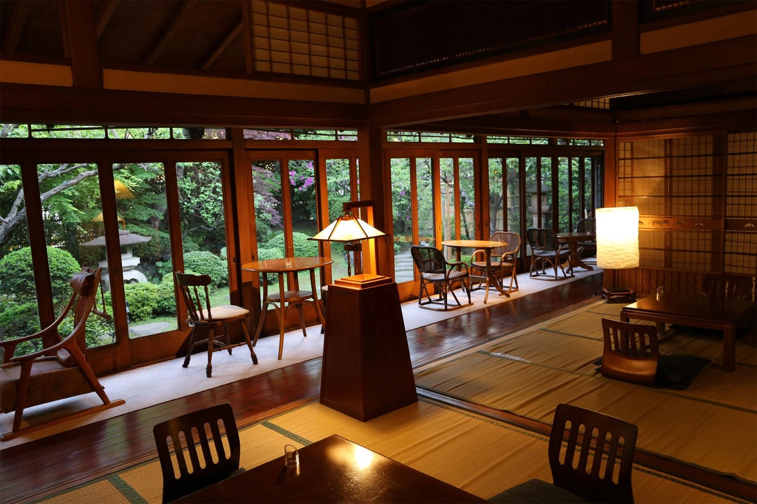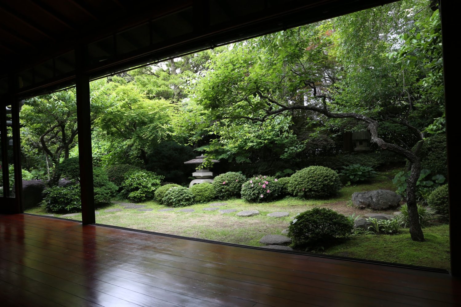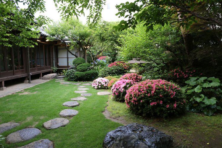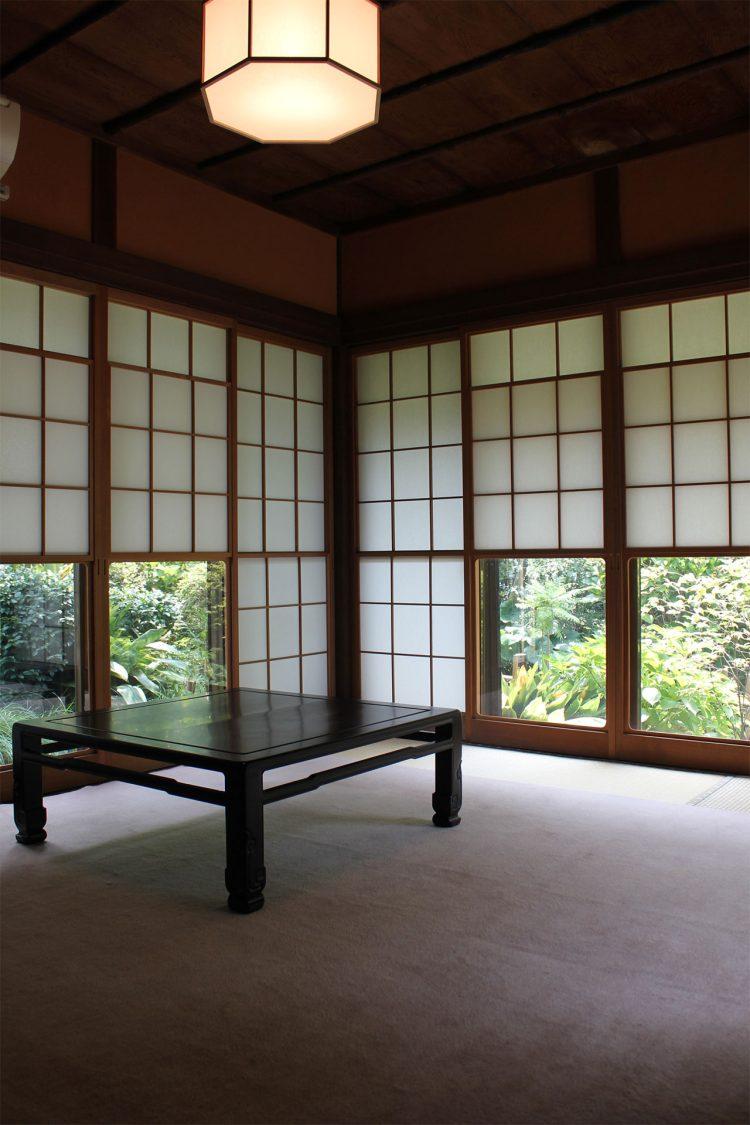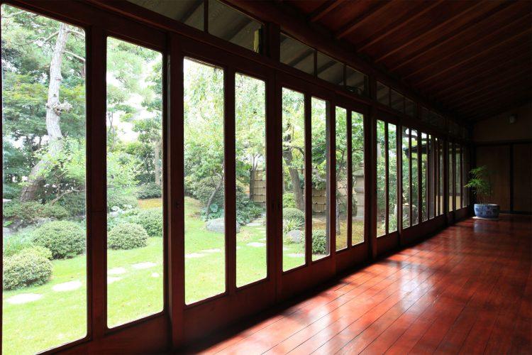 書院造りの和室や玄関わきの洋館はレトロな撮影に最適です。また、庭園には四季折々に咲く椿、梅、しだれ桜、ツツジ、紫陽花そして紅葉が植栽されており、長く縁側より全面、パノラマに広がります。