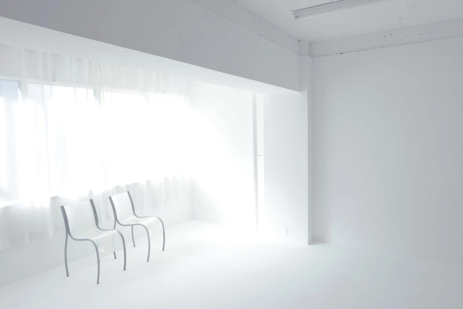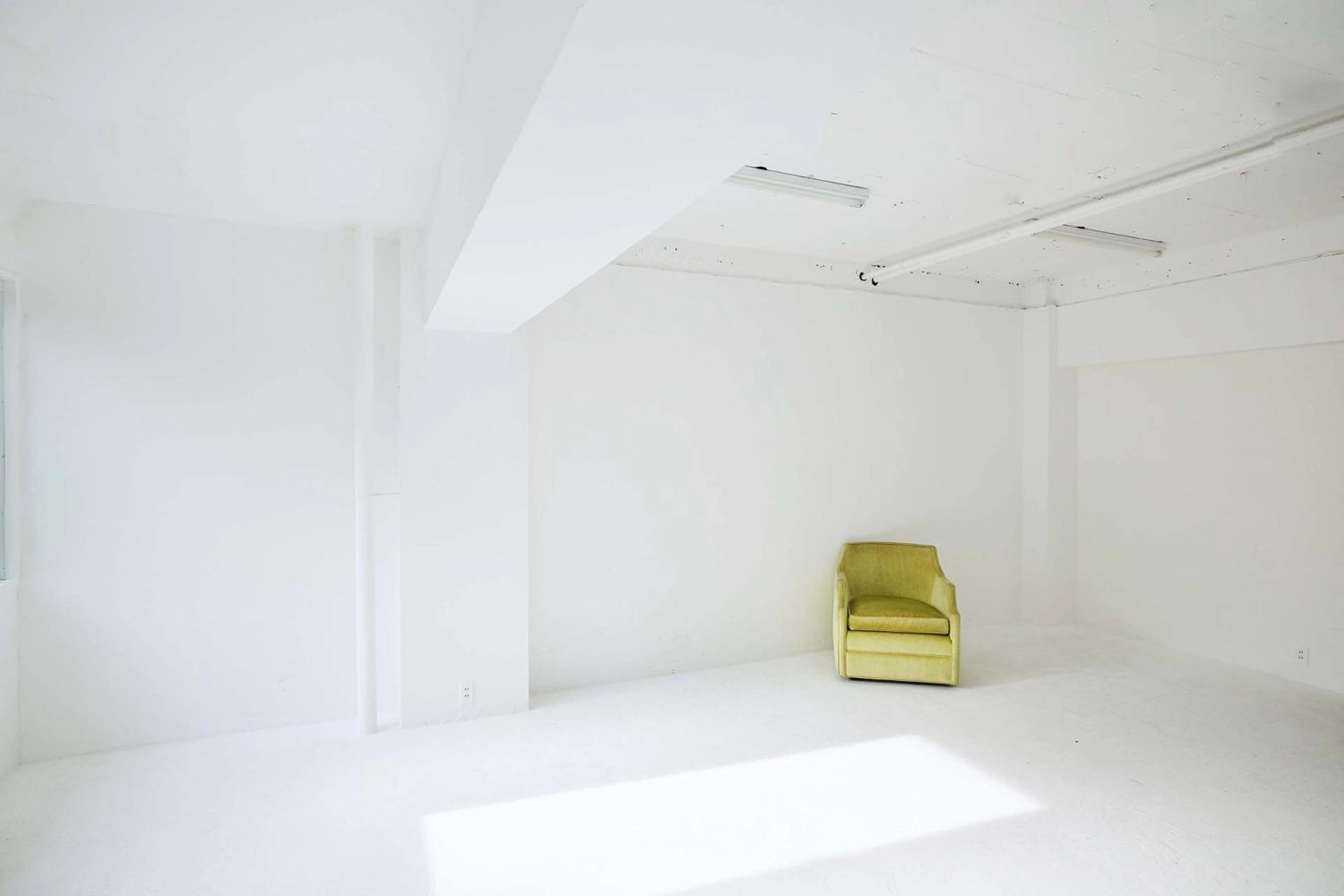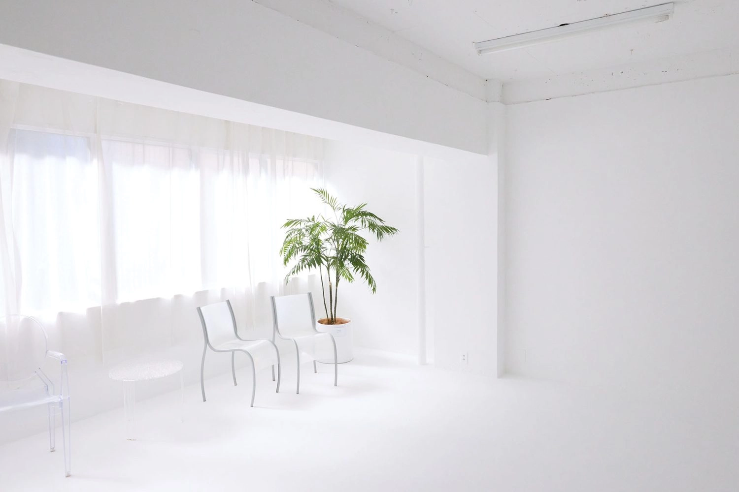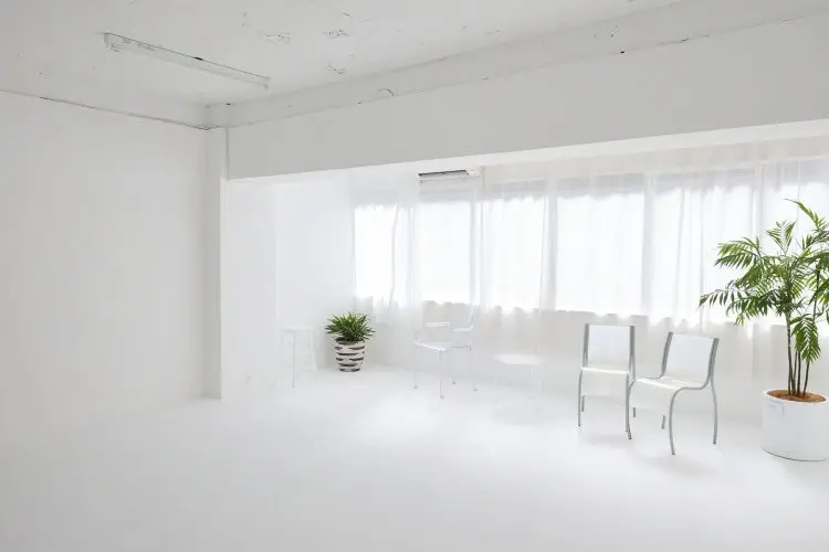 表情の異なる2つの空間を備えた自然光スタジオ。メインの白い部屋は西向きなので午後から明るくなります。
