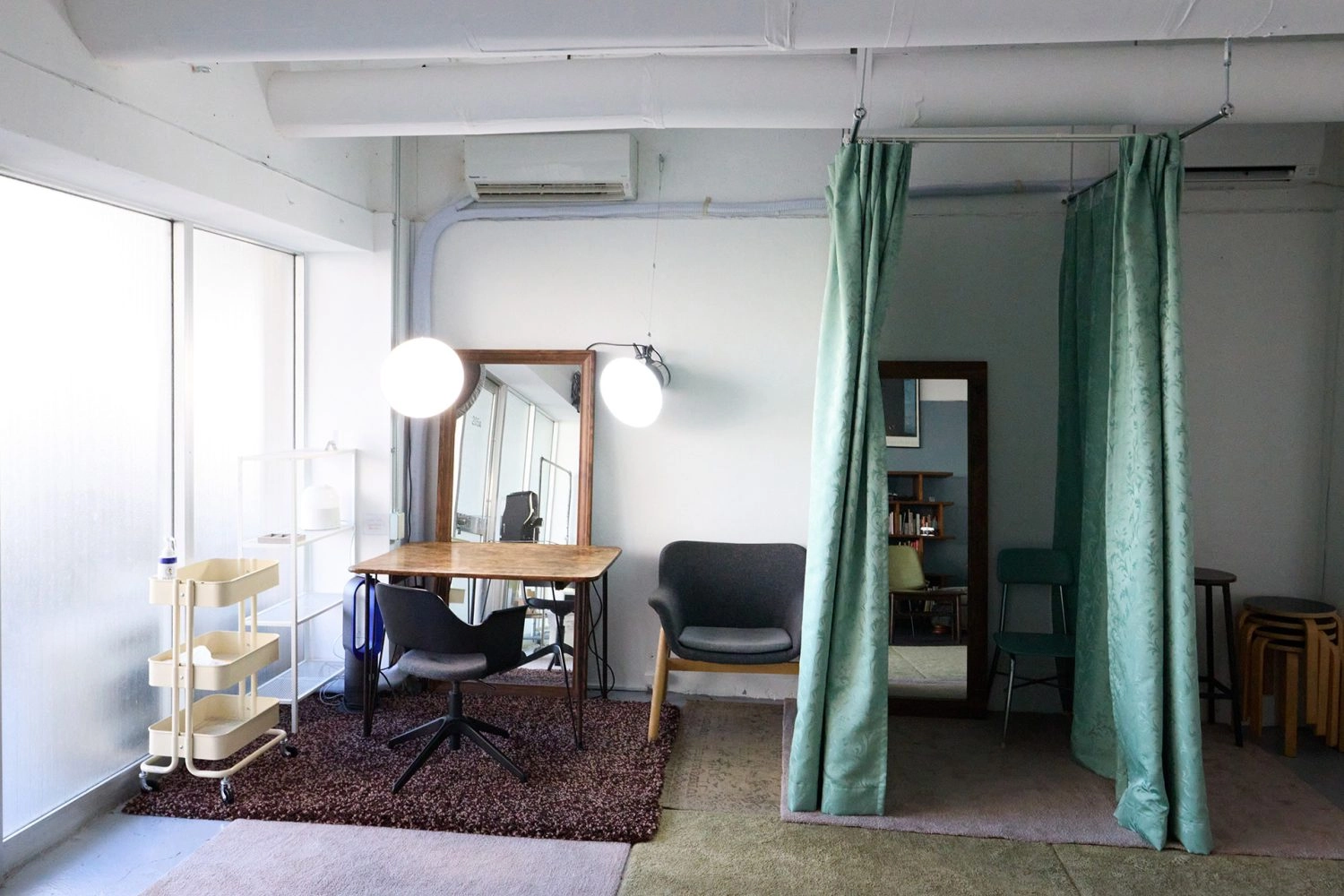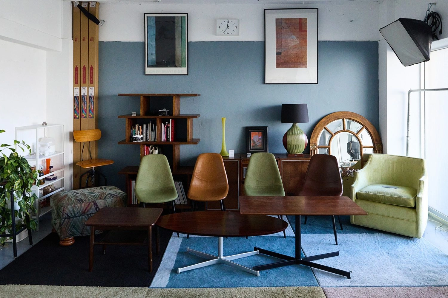 スタジオ内の家具はヴィンテージを中心に数多く揃えております。