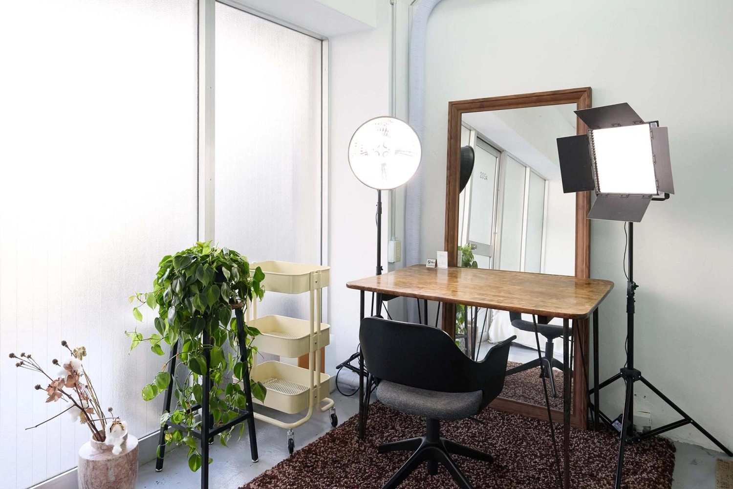 東京都目黒、山手通り沿いの店舗物件を改装した、シンプルなスタジオです。