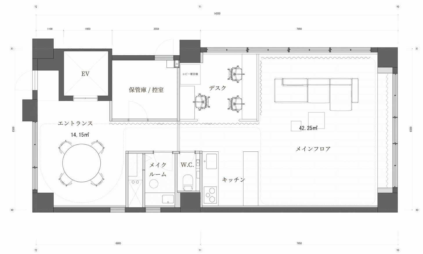 メインルームは、リビングでのくつろぎシーンやカウンターキッチンでのレシピ撮影に最適。ソファでのインタビュートーク企画にもおすすめです。