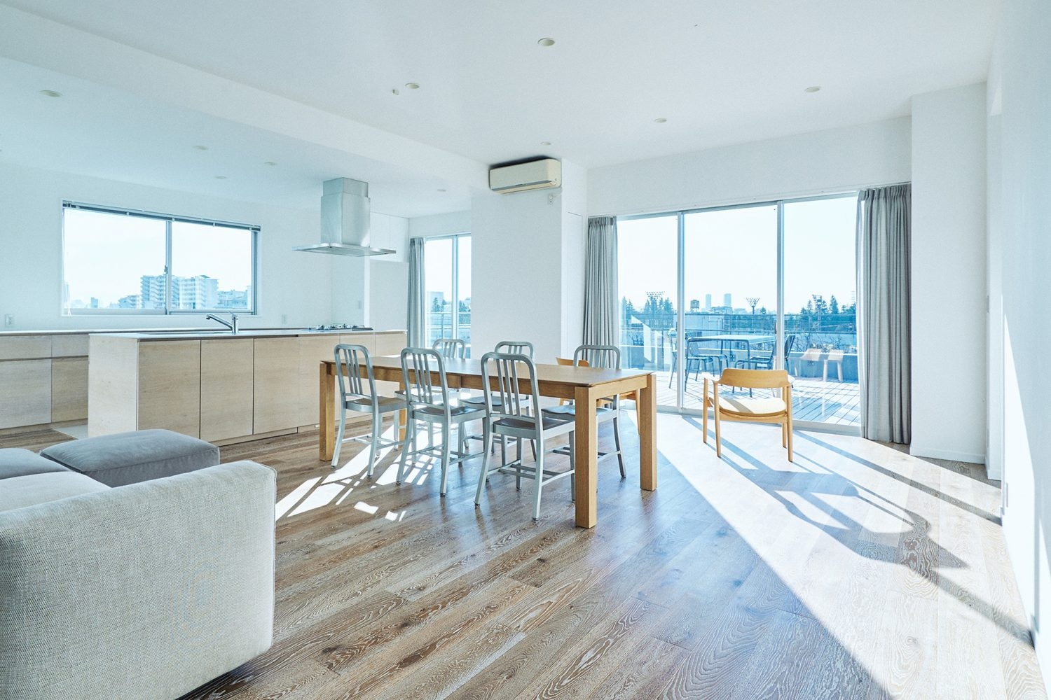ウッドデッキテラスからは解放的な空抜けとパノラマビューが広がります。