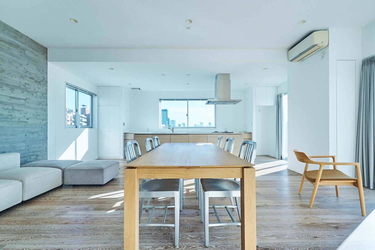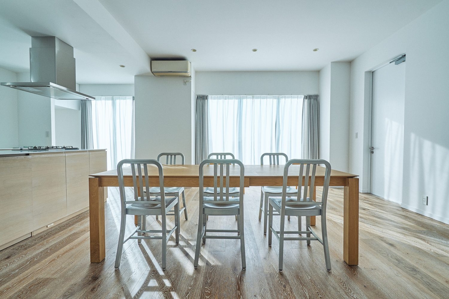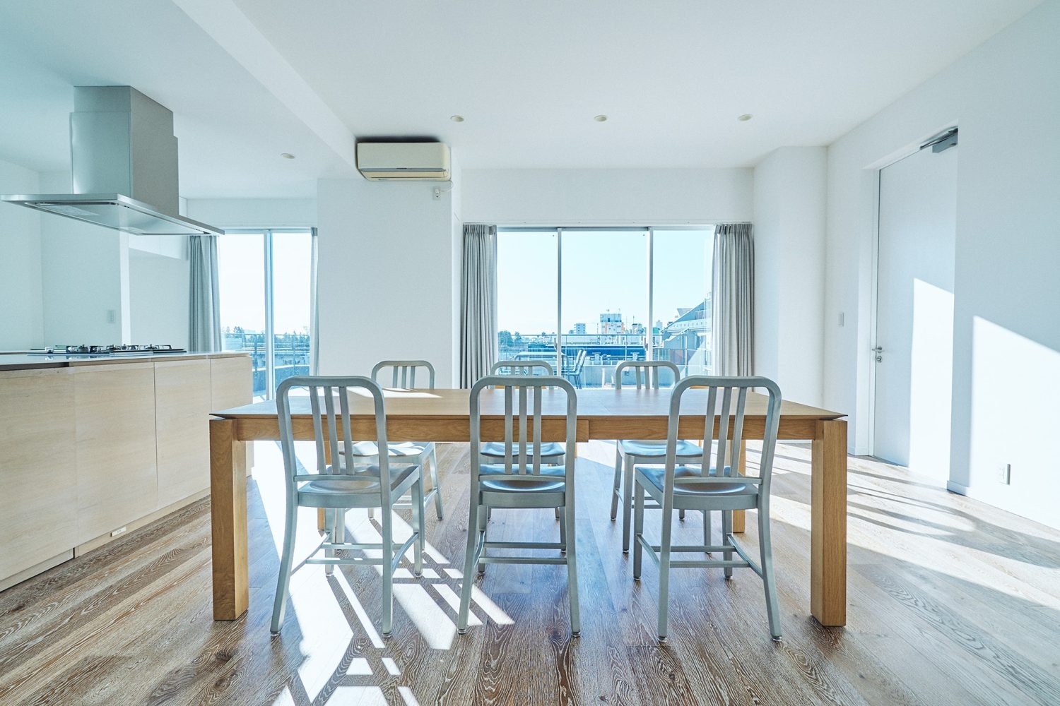 開放的なリビングルームとベッドルームに加え、とても明るく風通しのよいアイランドキッチンが印象的です。