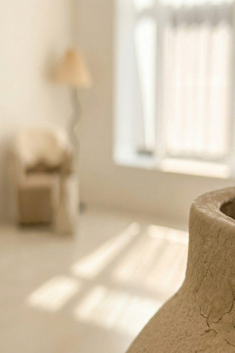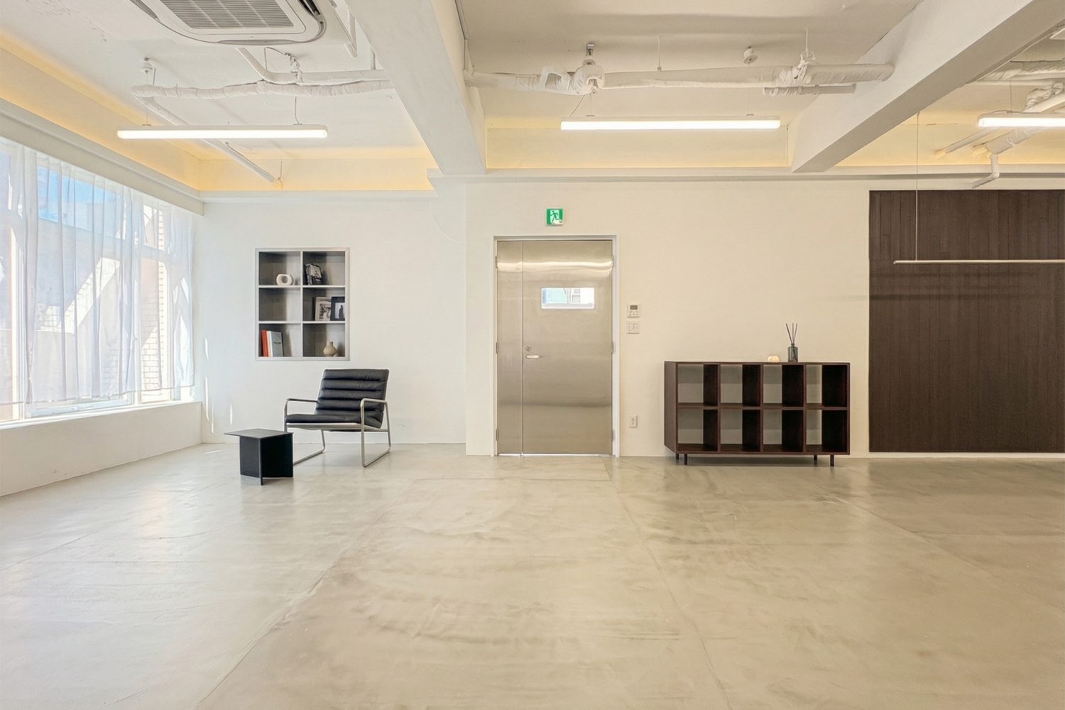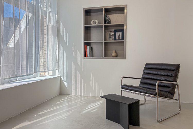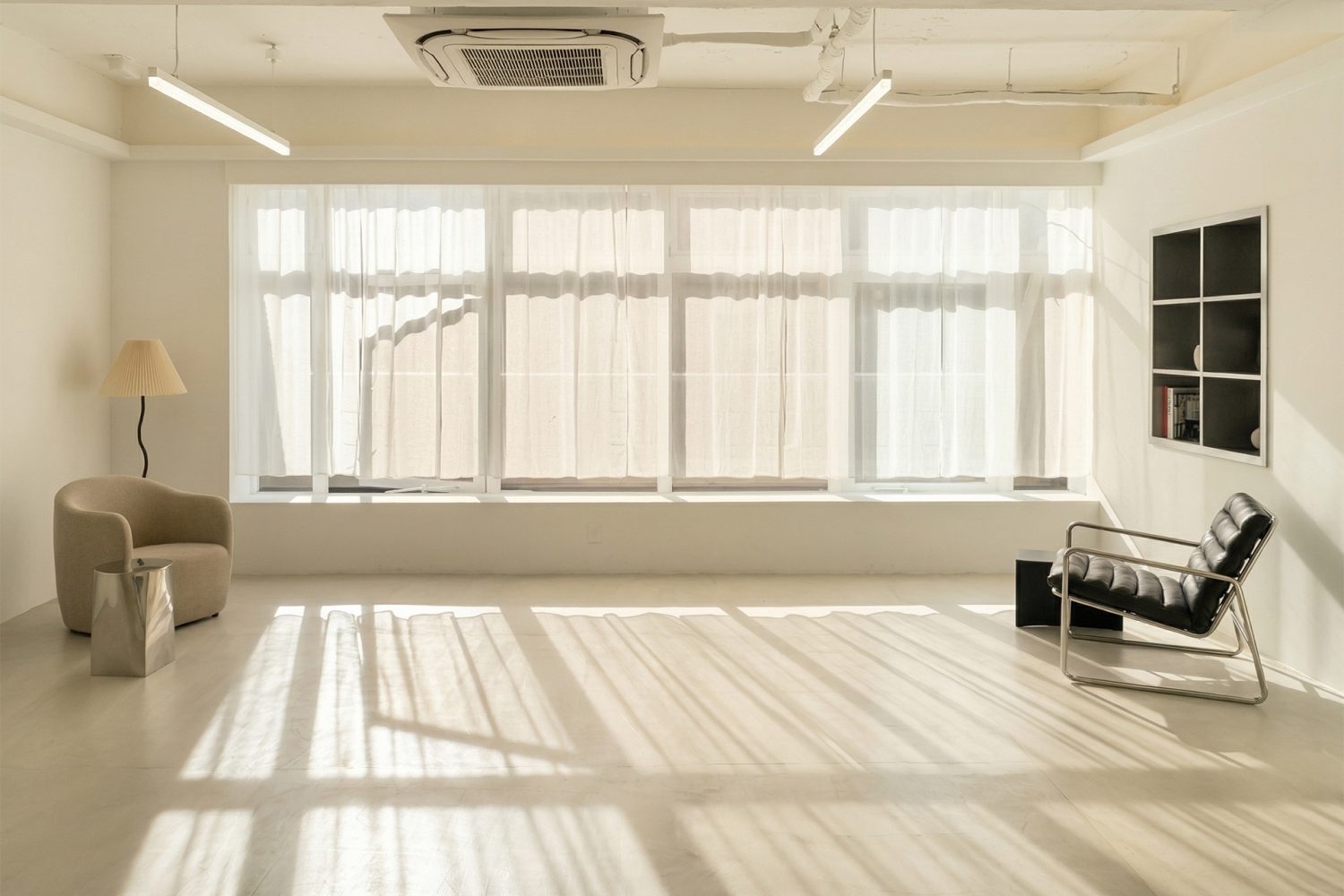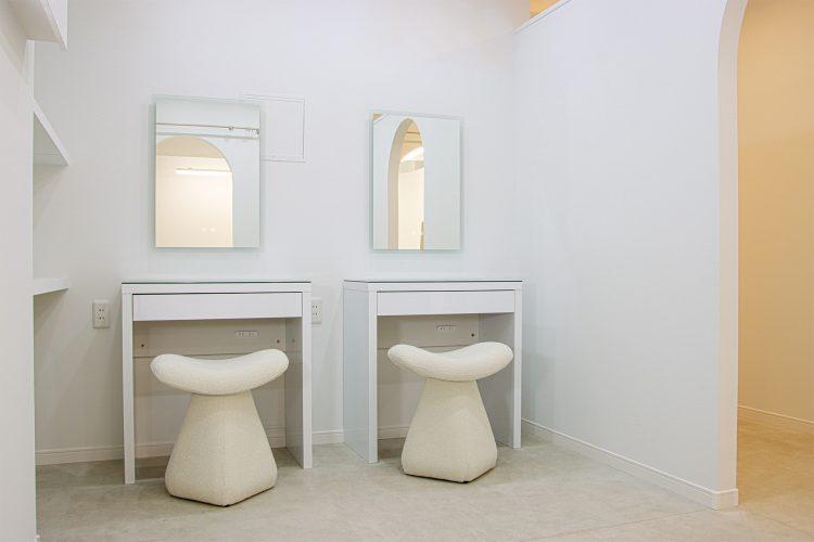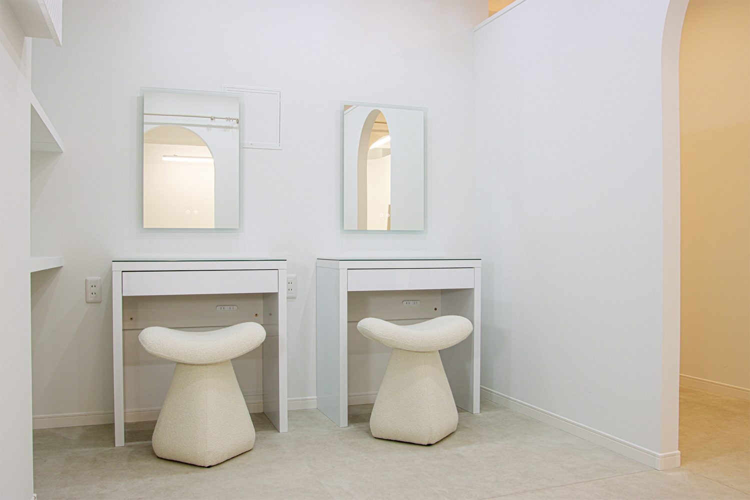 白を基調とした清潔感ある室内に、インテリアのアクセントが映えるスタジオ。