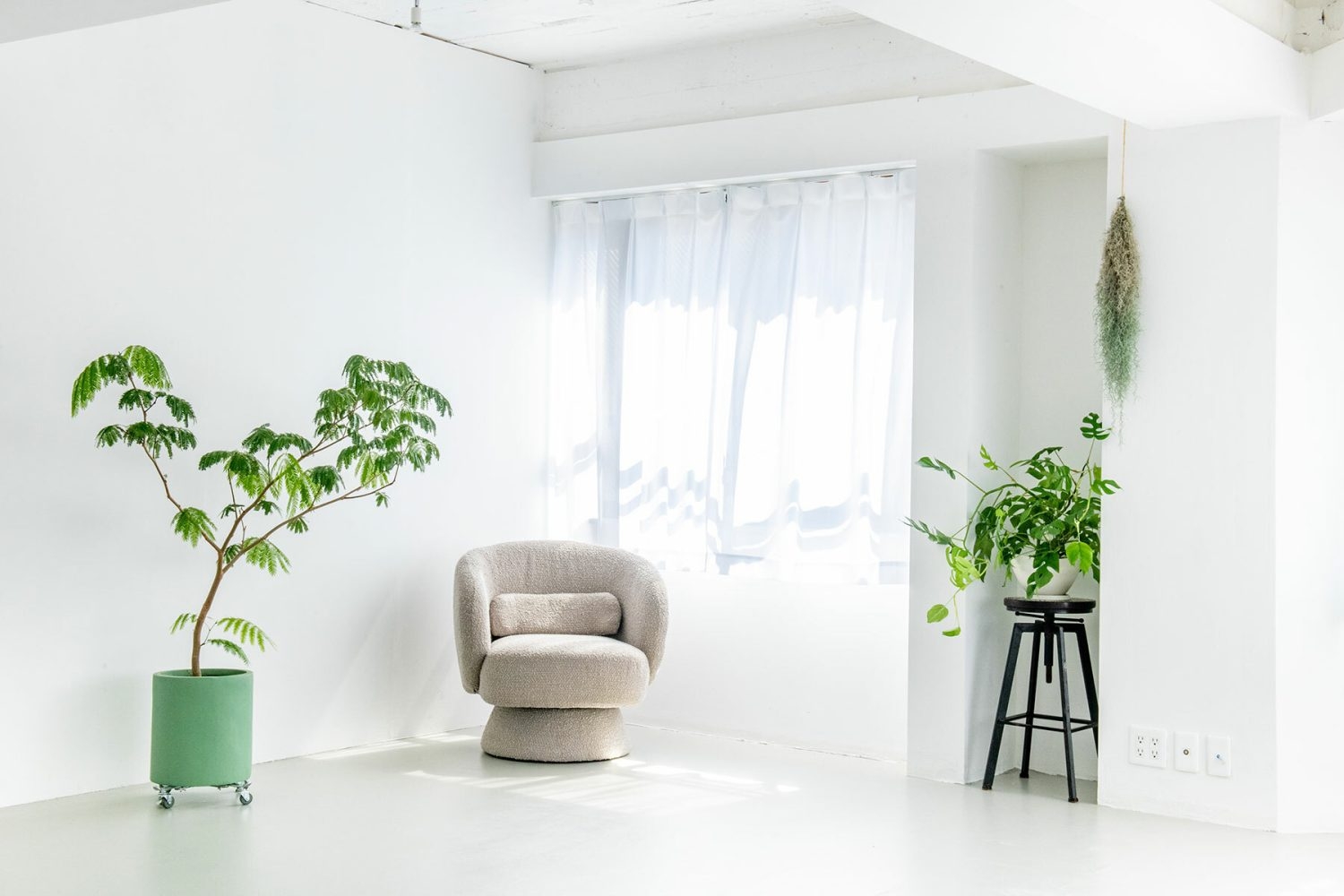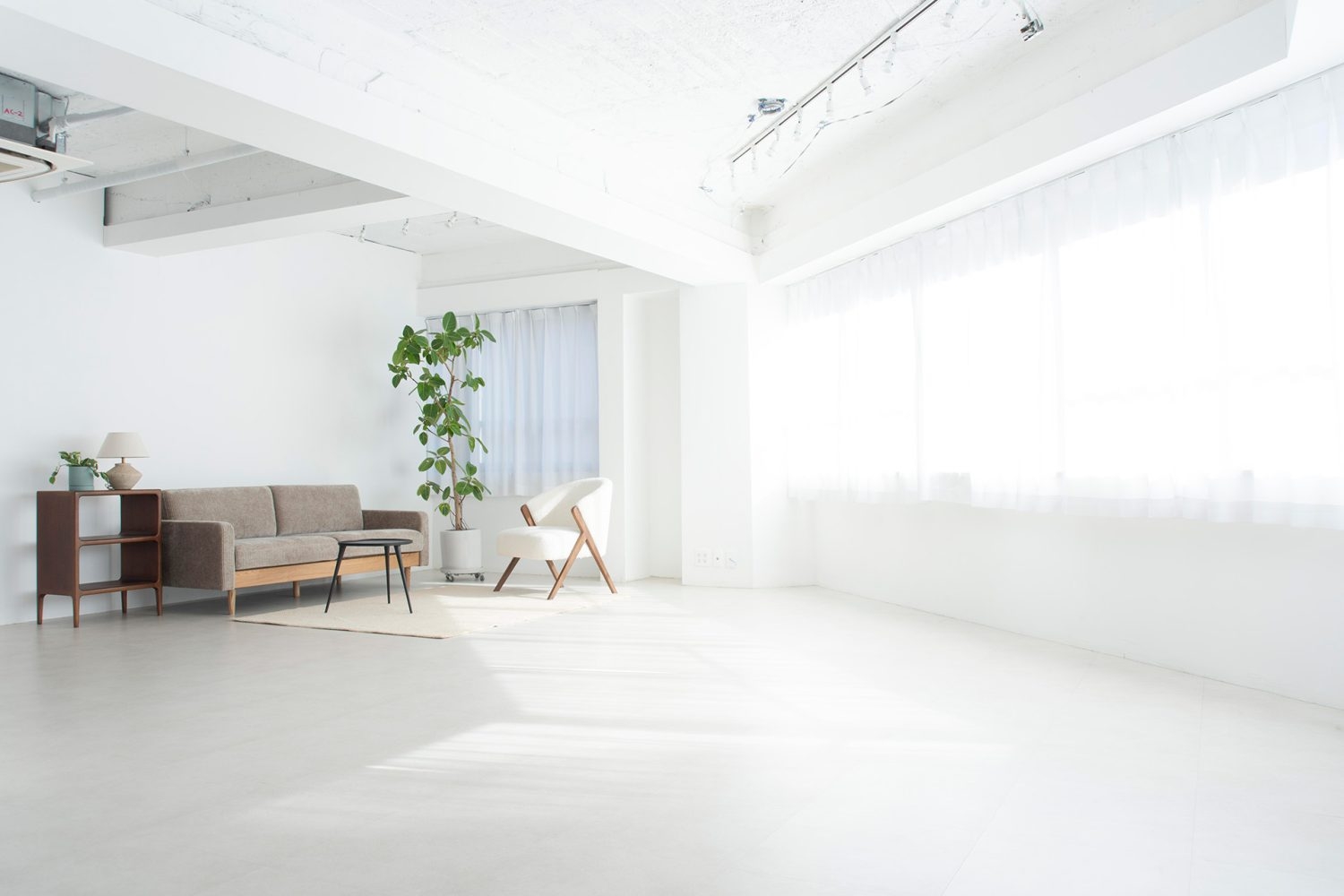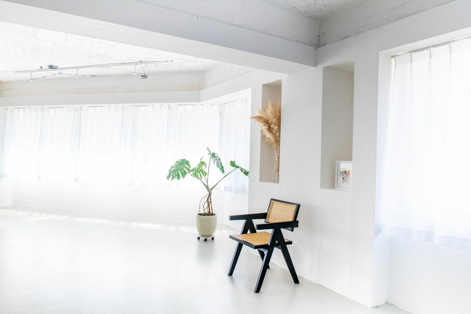 白壁が2面あるため、時間帯により使用する面を選べるほか、2カメラ同時進行での撮影にもおすすめ。