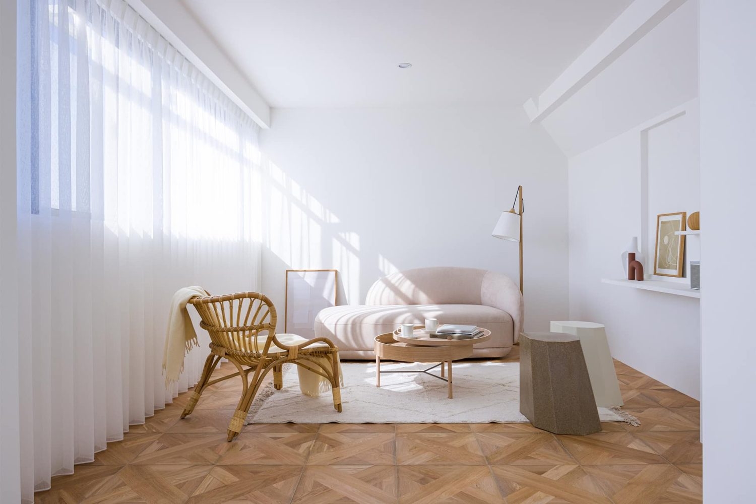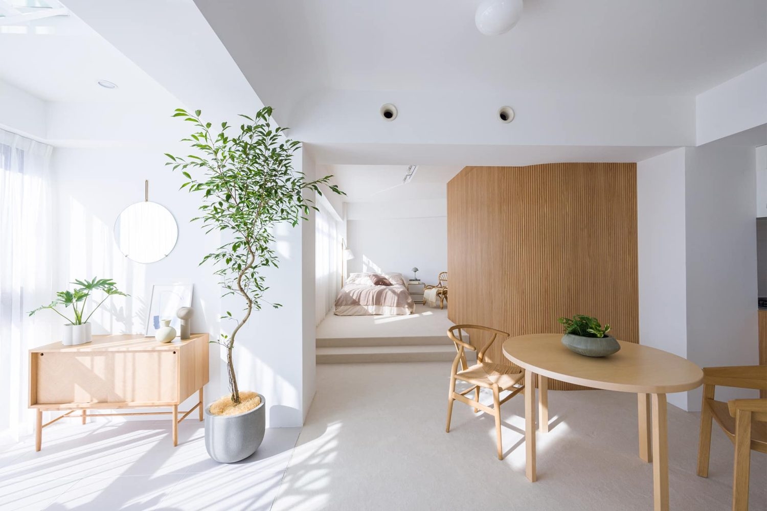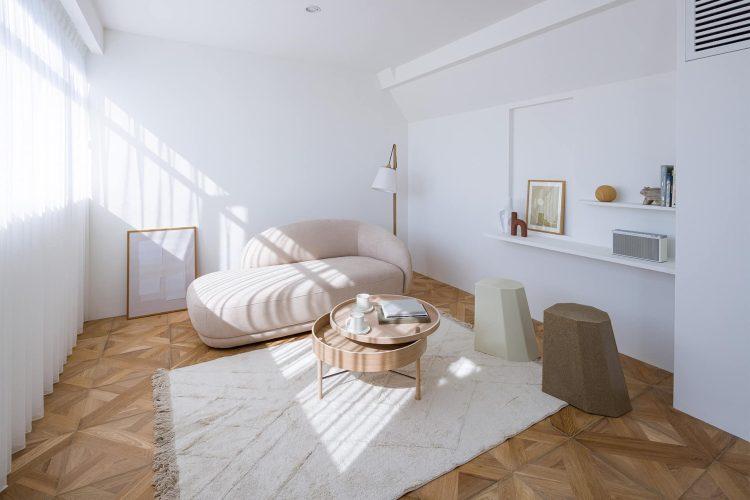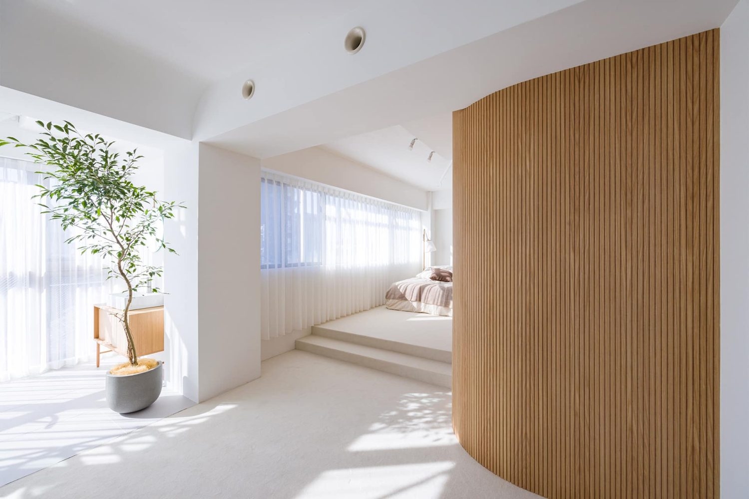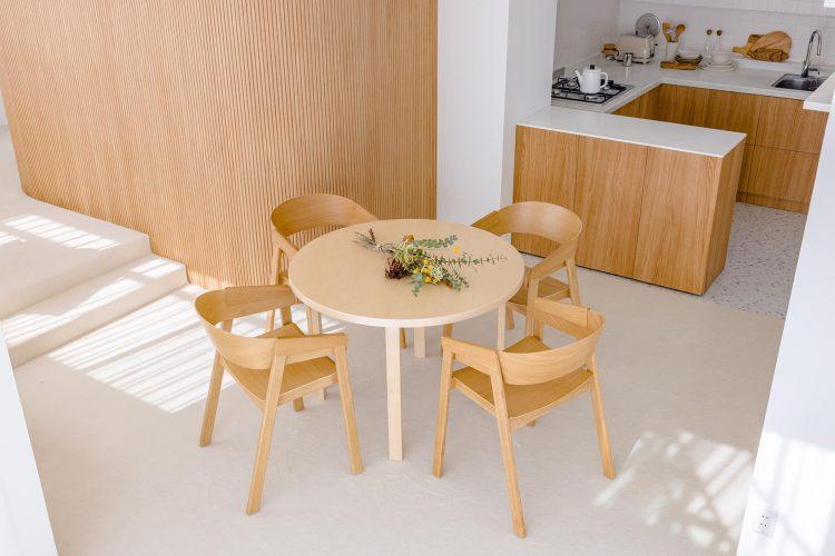 曲線が印象的な木壁をはじめ、明るい木の質感・北欧モダンなテイストを大切に作り込みました。