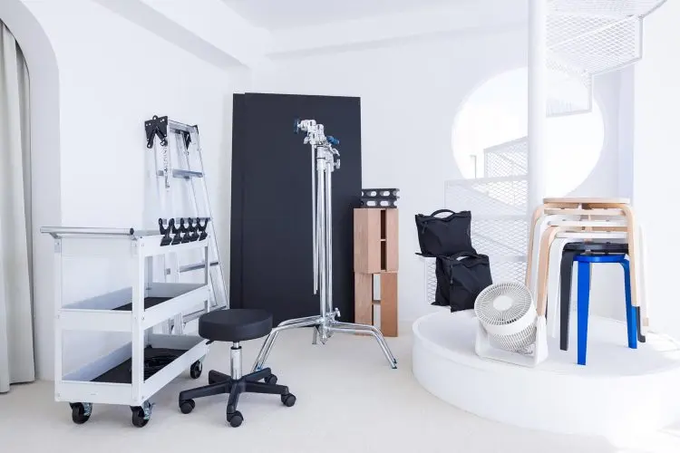 リビング、ダイニング、ベッドルーム、キッチン、洗面、玄関、屋上などの多様なシーン、家具や小物も豊富に揃え、長時間の撮影でも便利にご利用いただけます。