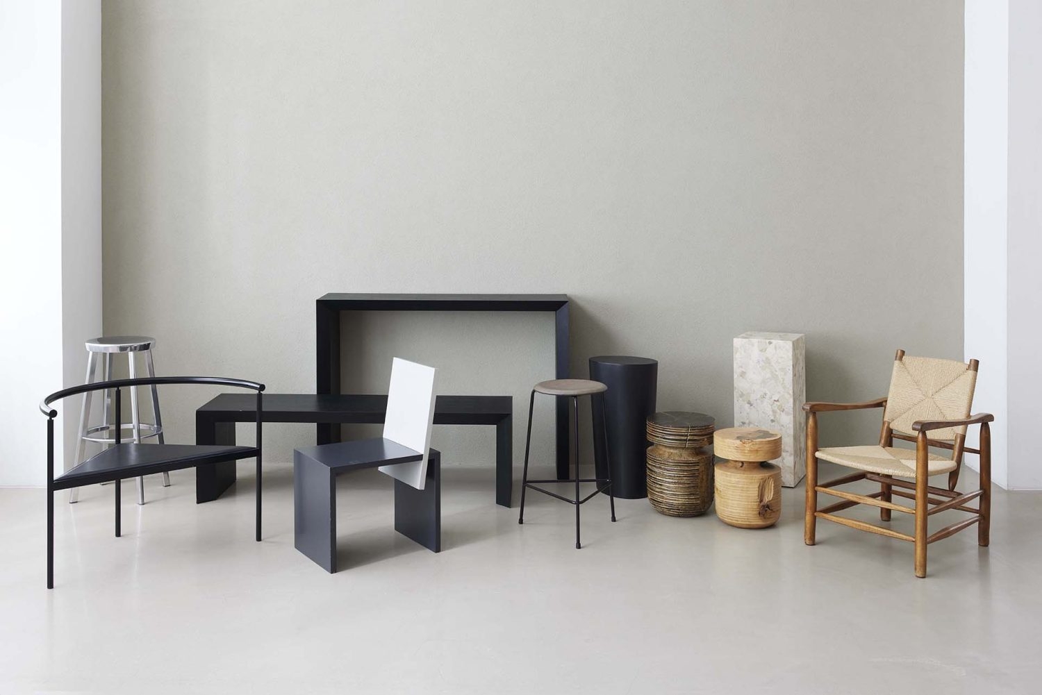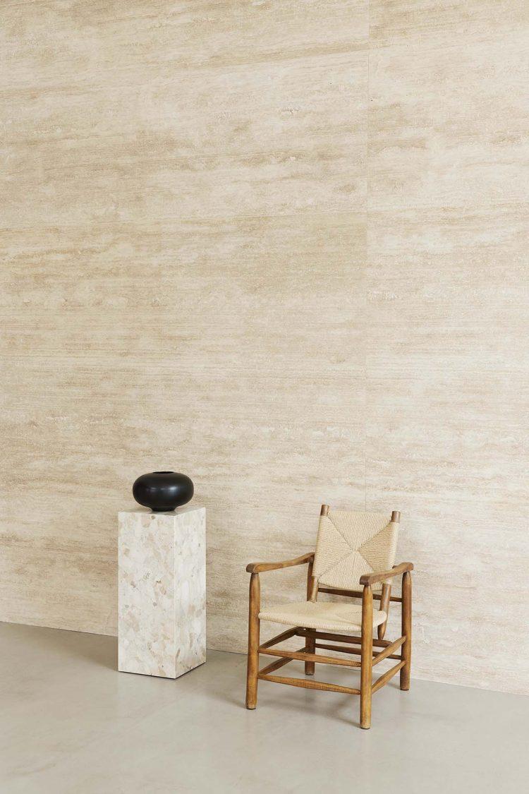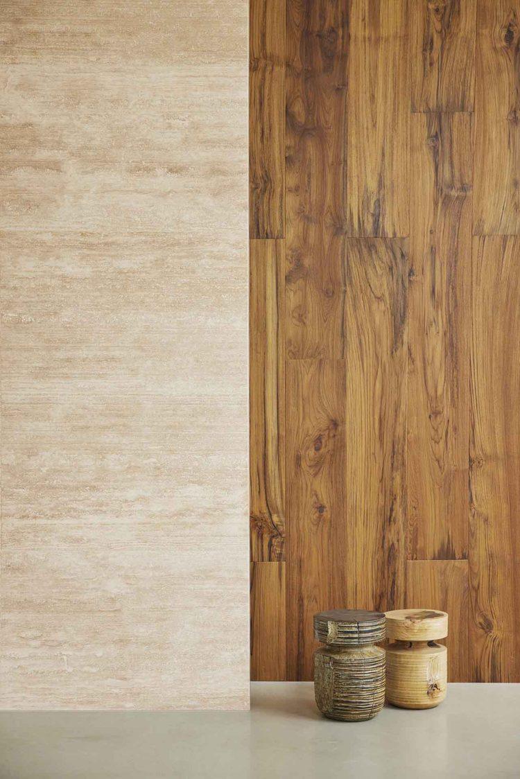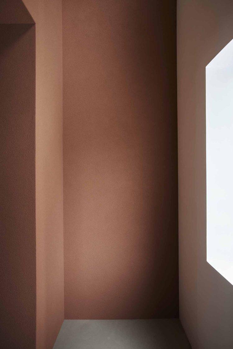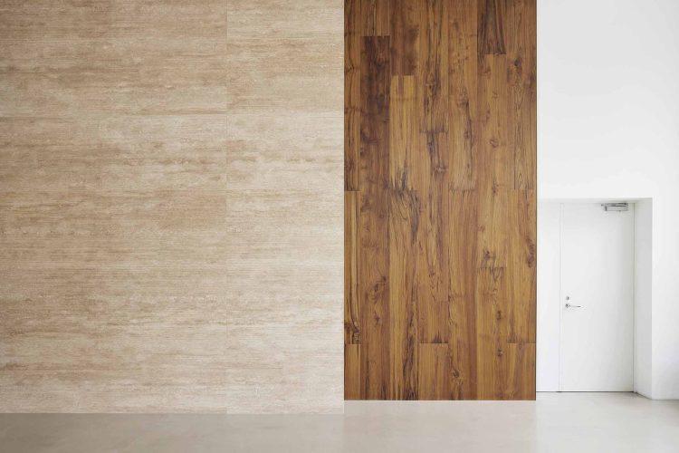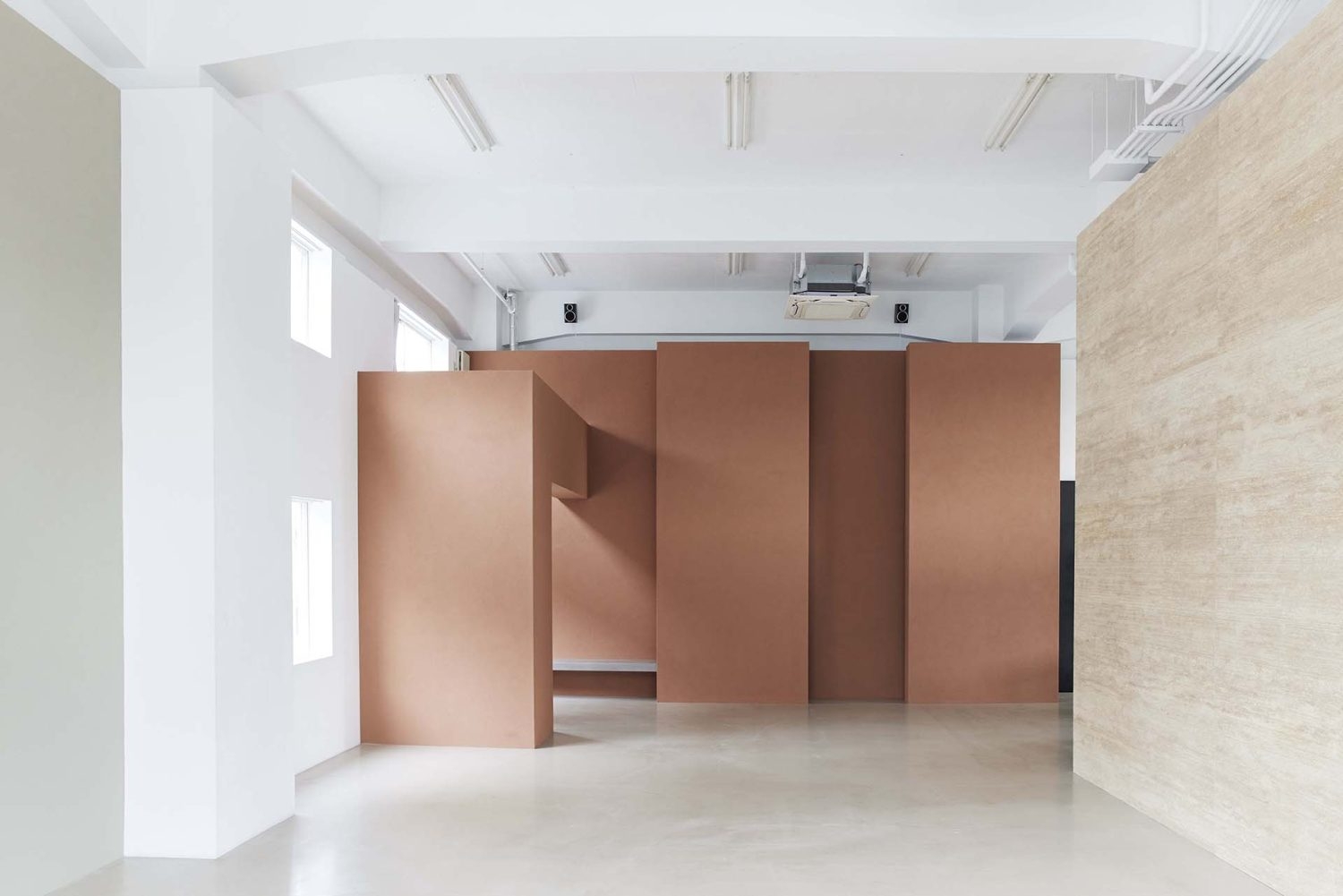 左官職人が仕上げたテラコッタカラーの立体的な壁面、優美なコントラストが印象的な大理石とチーク材の壁面、エイジングに時を費やした黒錆の壁面、柔らかな日差しが差し込むライトグレーの土壁、モダンな特大サイズの可動壁は大開口の窓際に設置することにより綺麗な日差しを捉えます。