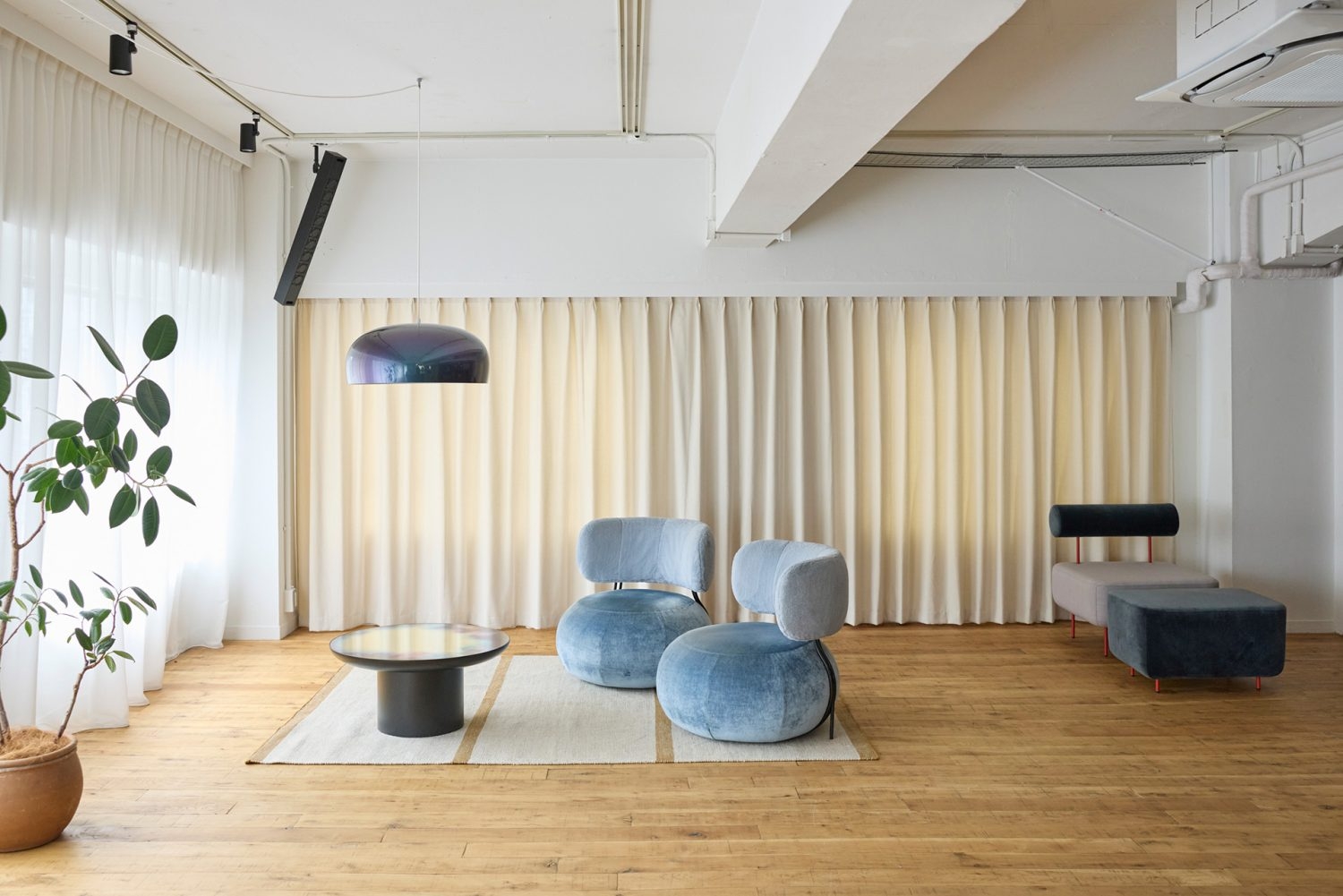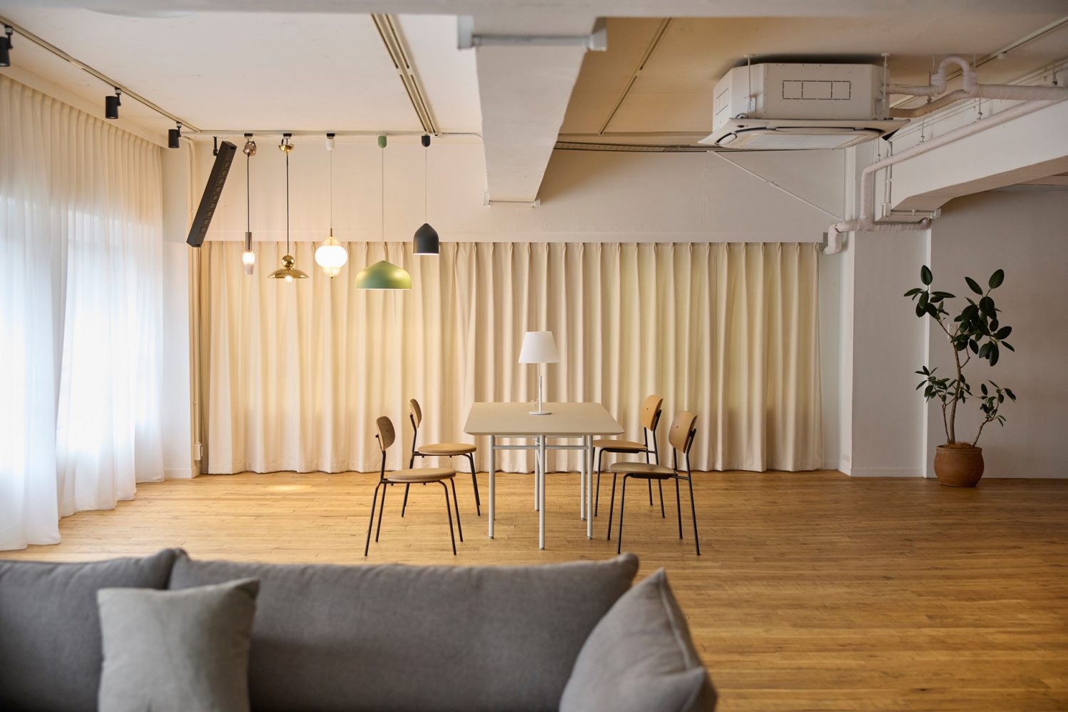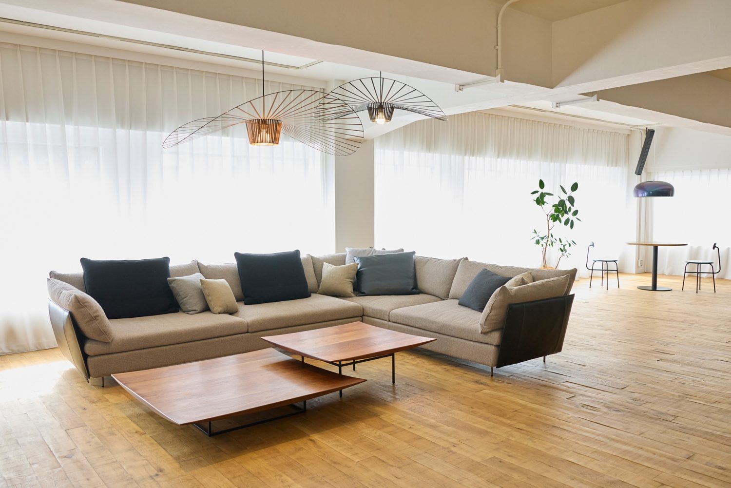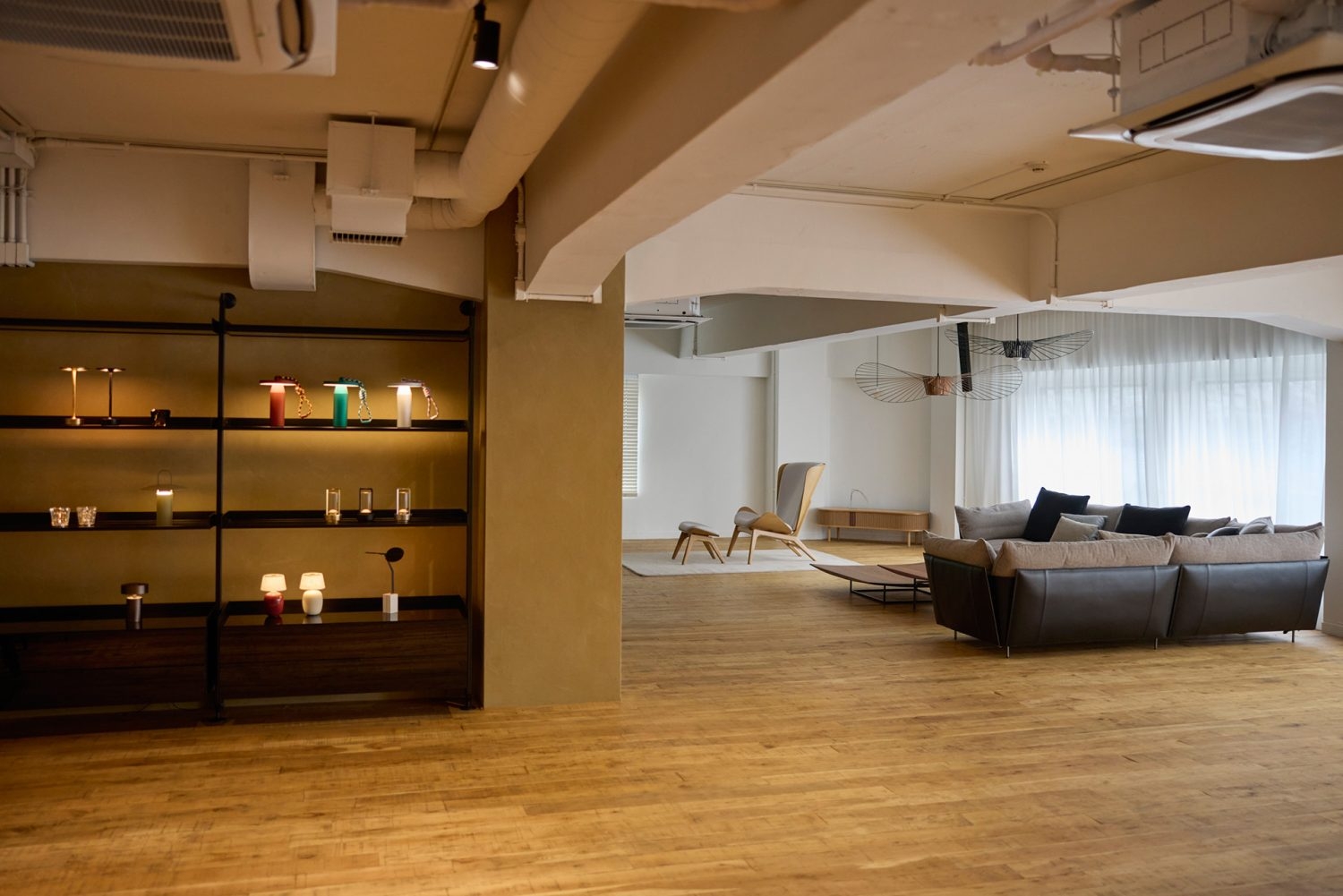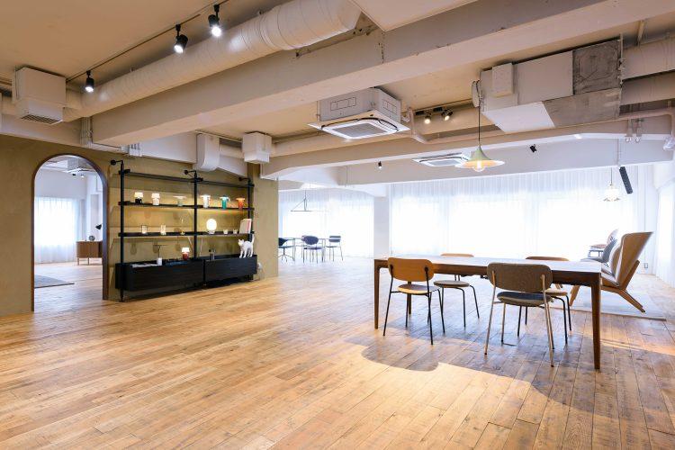 池尻大橋駅より徒歩8分。イタリアや北欧のデザイン家具・意匠照明を取り扱うインテリアショールームを撮影スタジオとしてご利用いただけます。ウッドを基調としたナチュラルモダンな空間で落ち着きのある雰囲気を演出します。