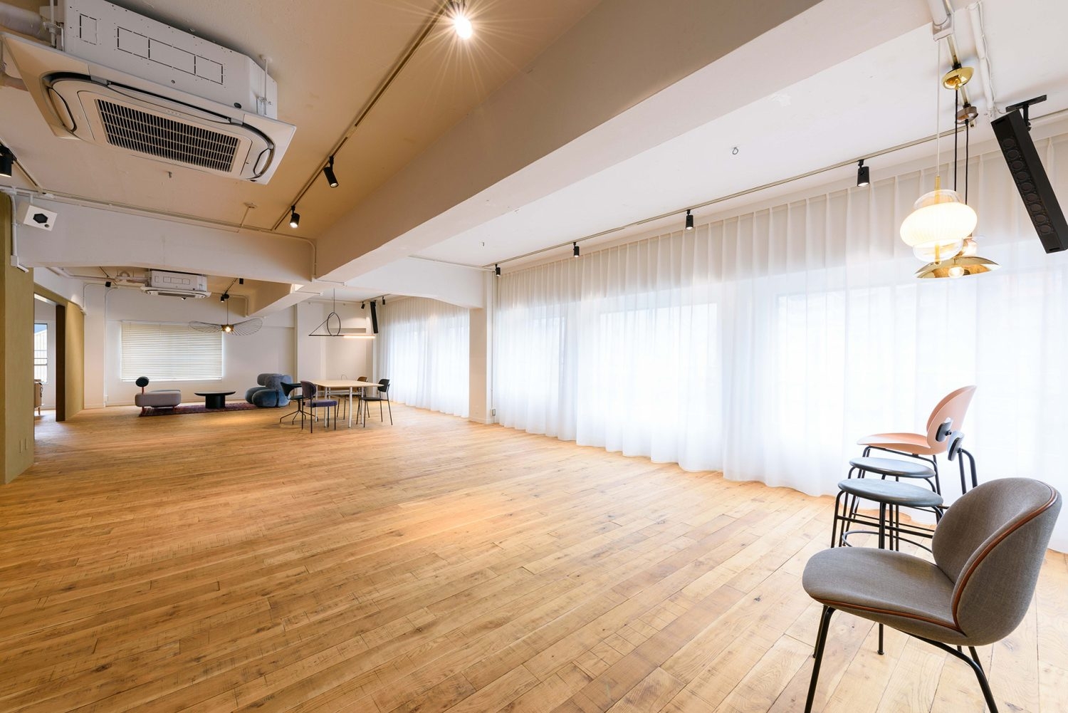2面採光のため、多方面から豊富に自然光が差し込み、あたたかくやさしい空間で撮影いただけます。広めのワンルームのつくりなので、レイアウトによりさまざまな演出・撮影が可能です。