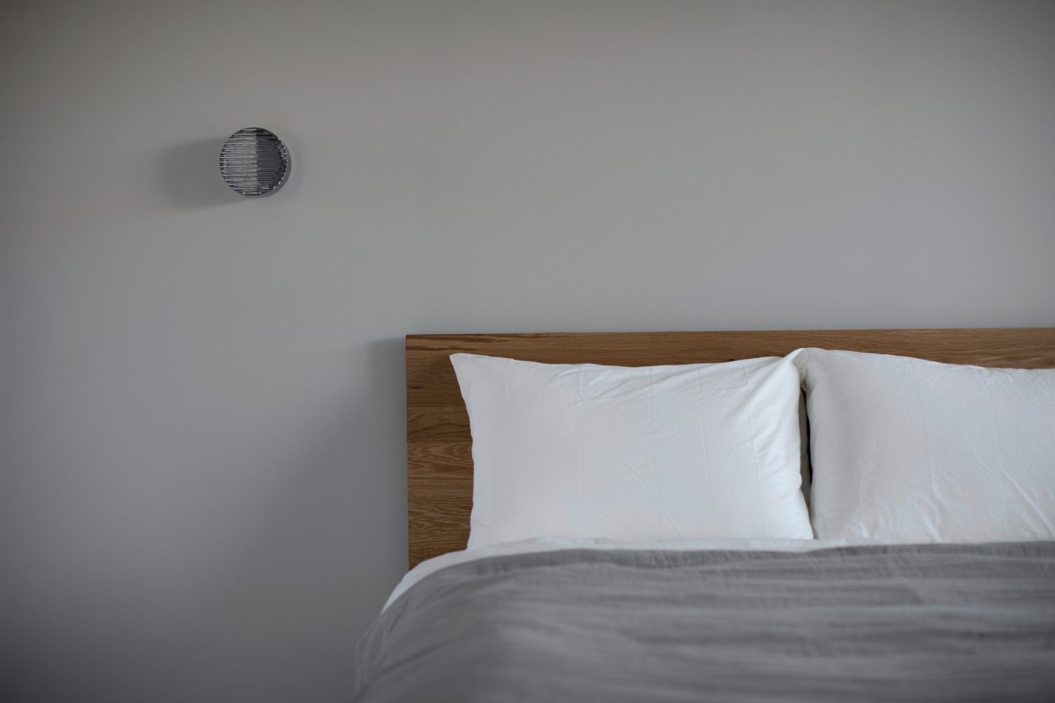 3階はベッドルームフロアとして、白を基調としたベッドメイキングが施されたダブルベッドを設置し、清潔感のある空間です。