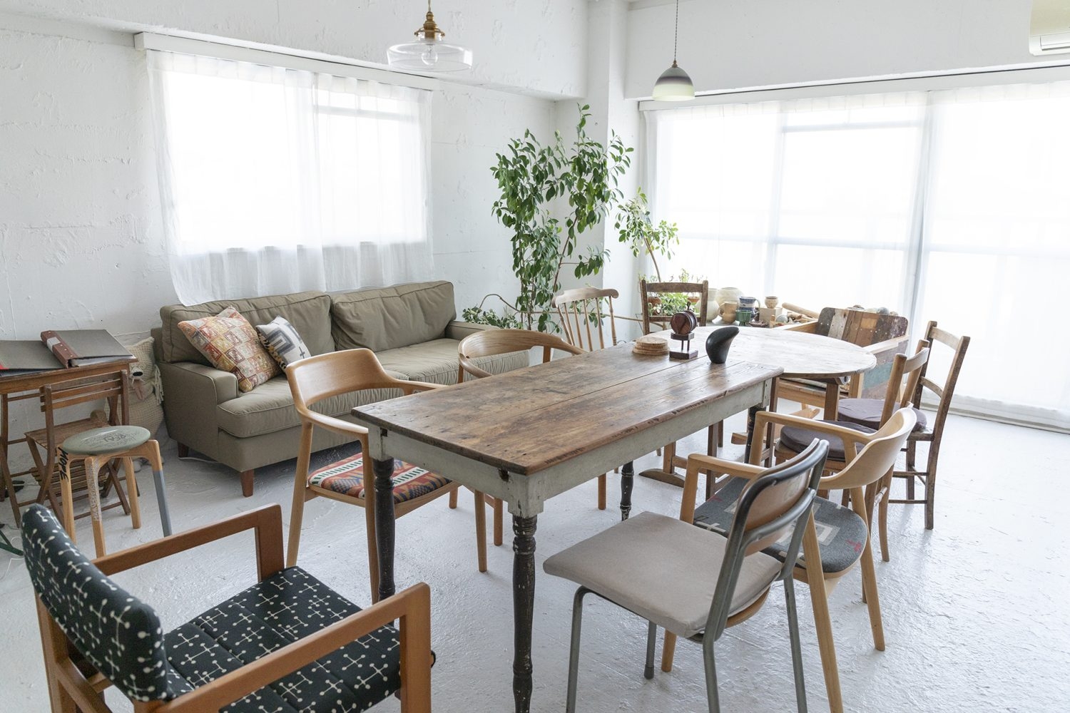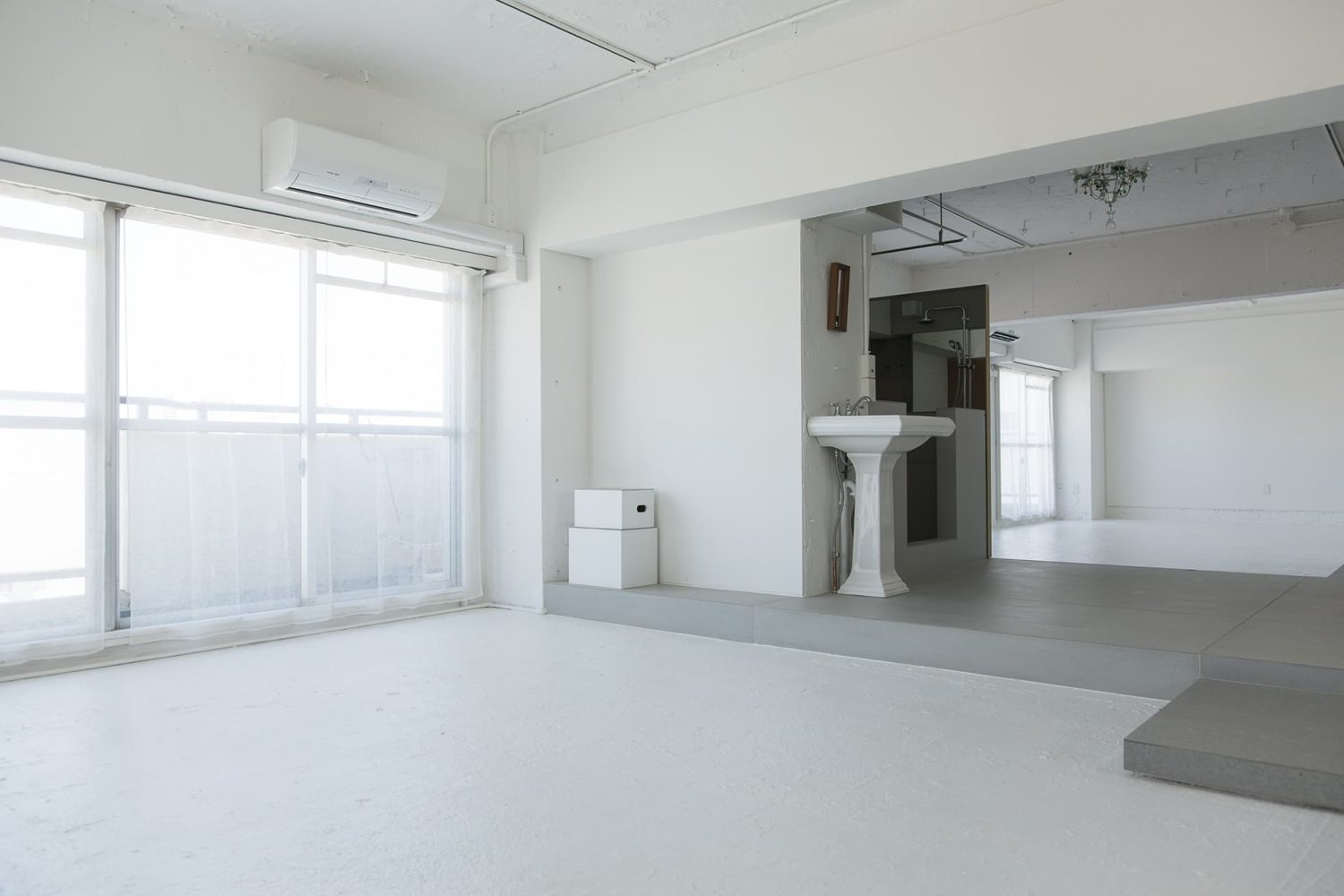 白壁・白床の、白を基調とした空間に、一日中自然光が差し込みます。