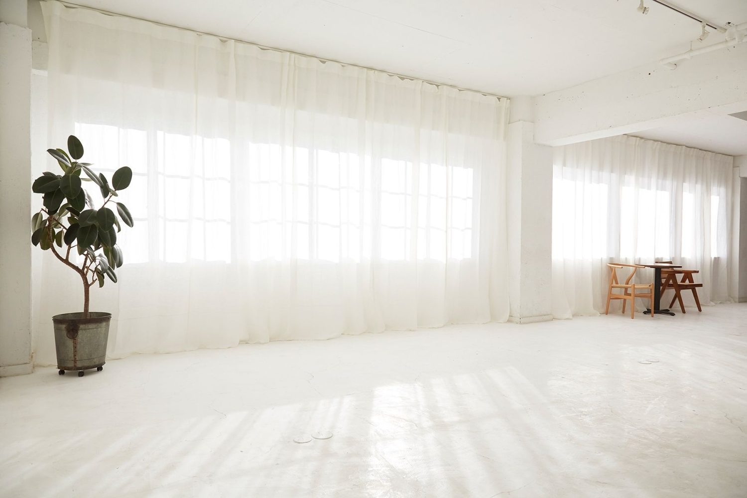 朝から夕方まで、全体的にやわらかな光に包まれた優しい印象のスタジオです。