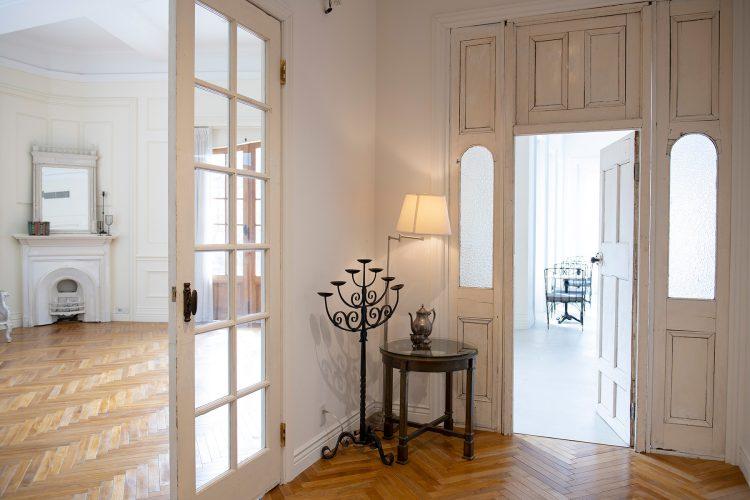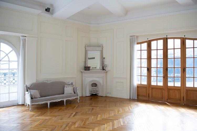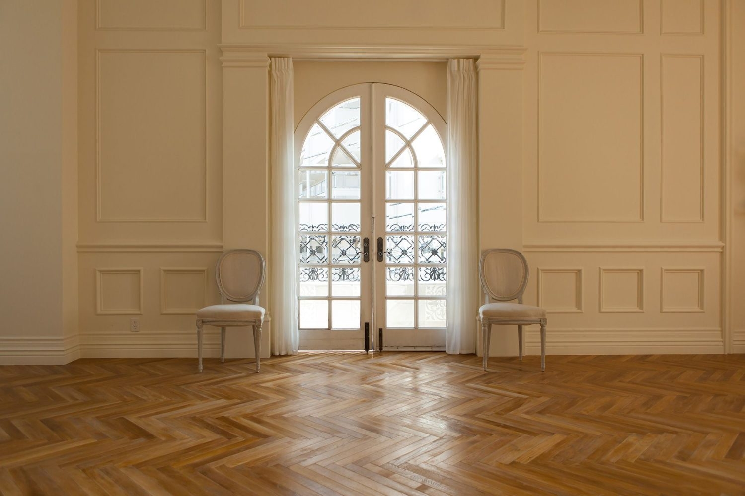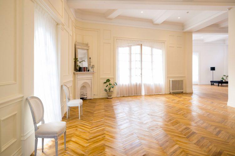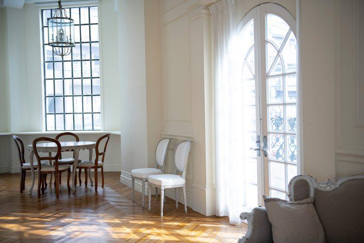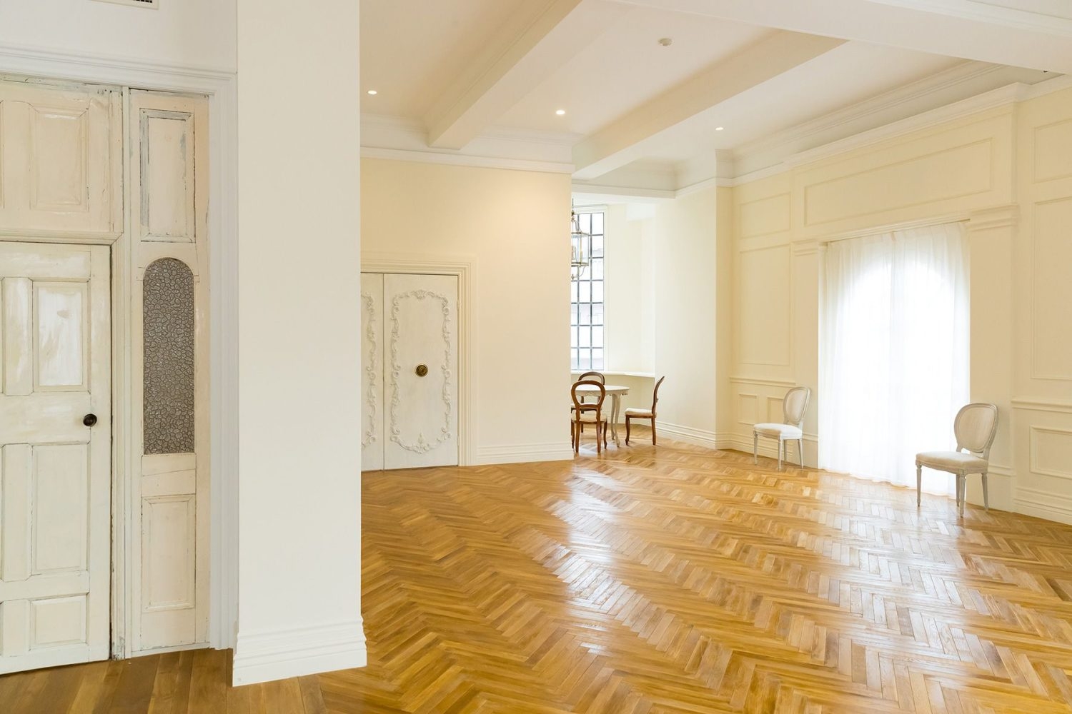 白い壁やヘリンボーンの床などクラシカルな雰囲気です。