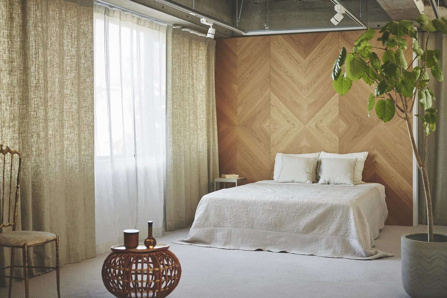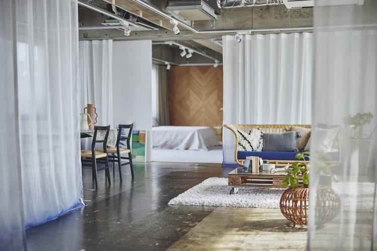 リアルライフをテーマにモダンかつ上質なインテリアで構成されたリビングダイニング、ベッドルーム、バスルームと、上質な生活シーンが撮影できます。