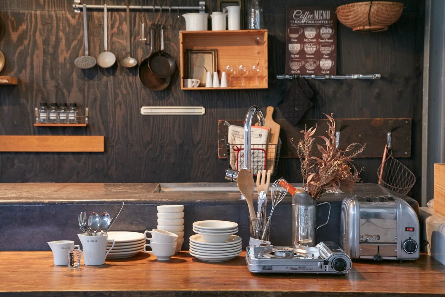 インダストリアル感のあるカフェ風キッチンのスタジオです。
