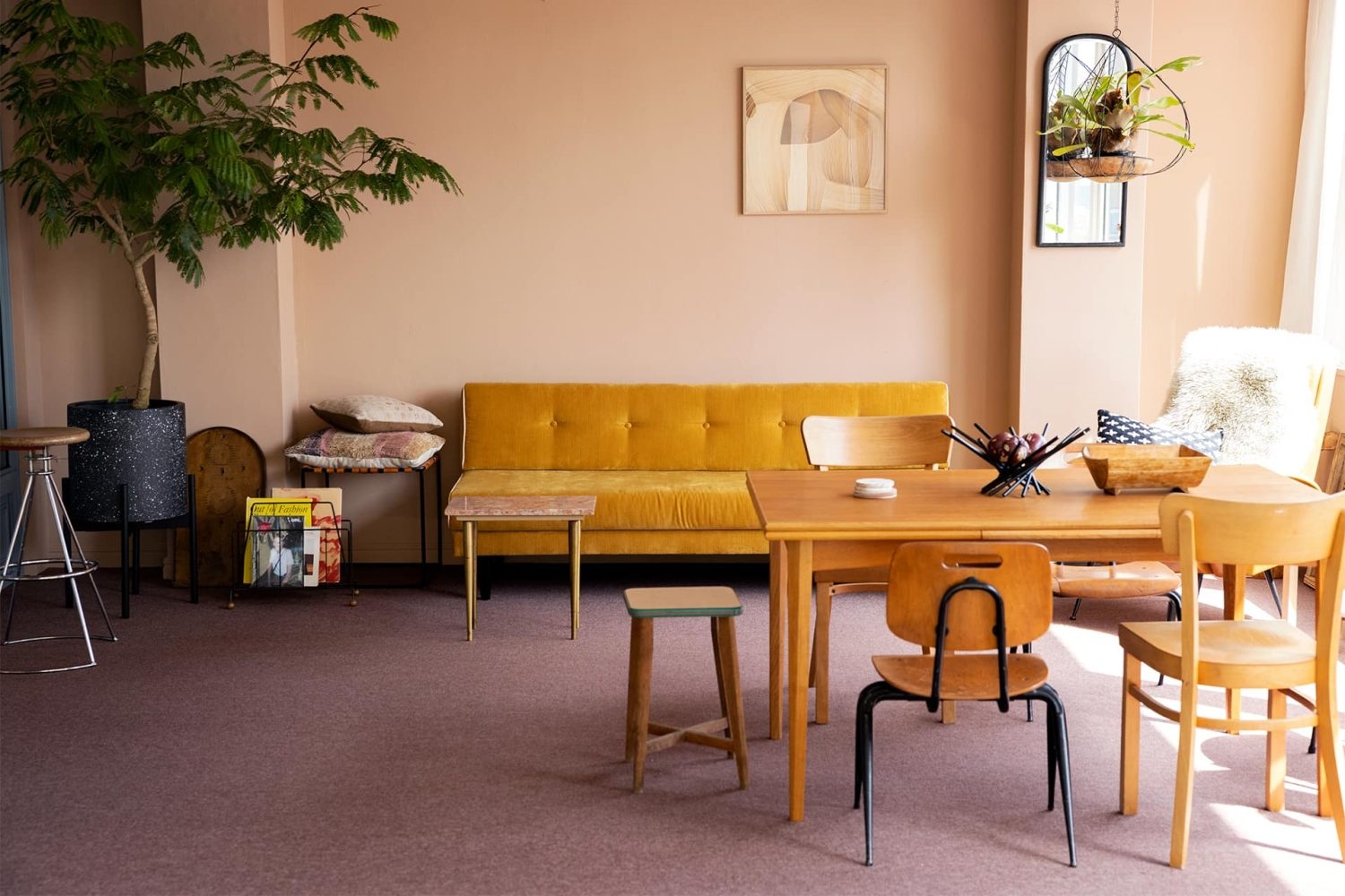色と素材にこだわったソファやダイニングテーブルもあり、落ち着いた雰囲気の撮影が可能です。