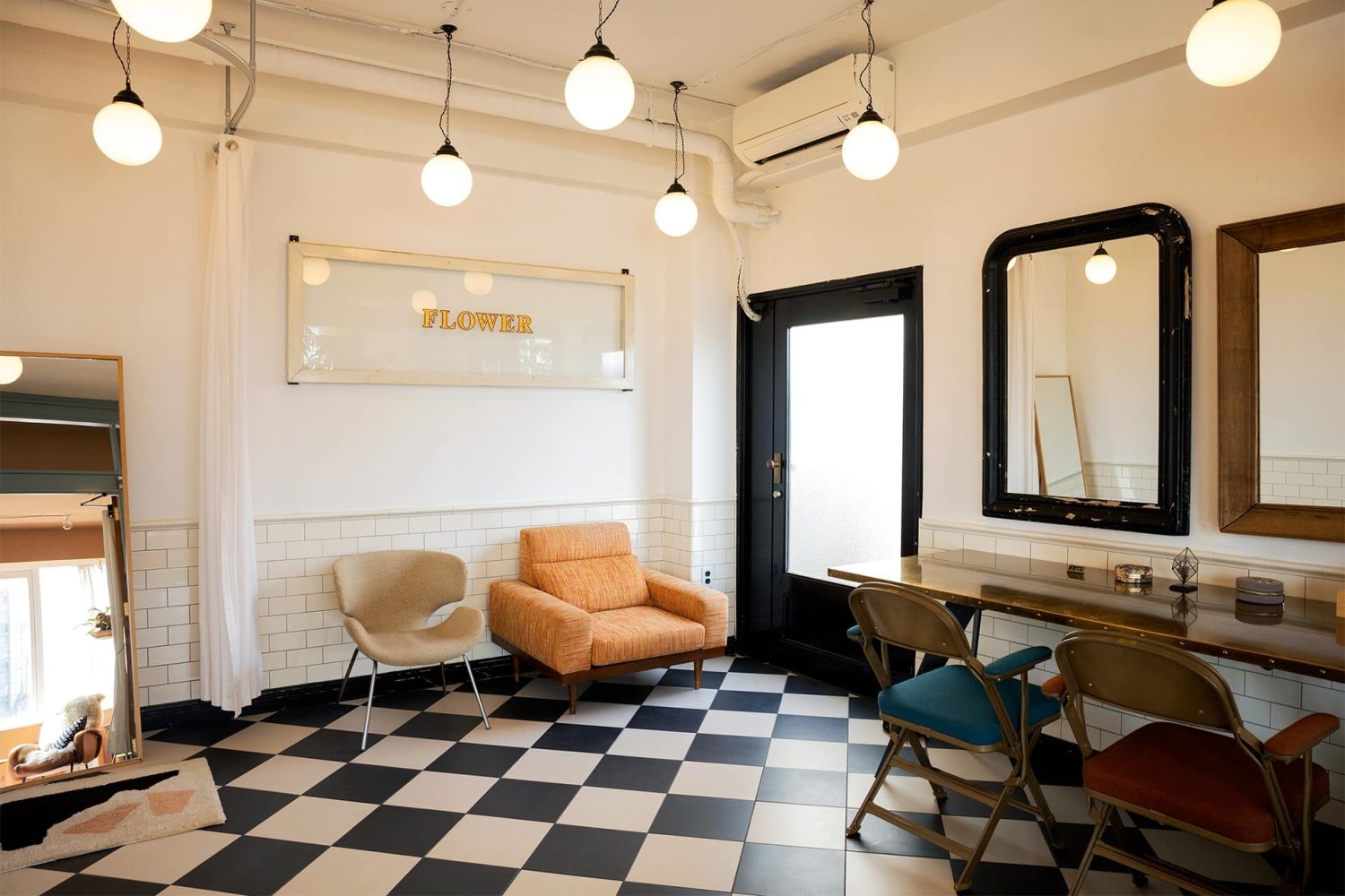 リニューアルで、床はモルタル白塗装とカーペットの2パターンに。