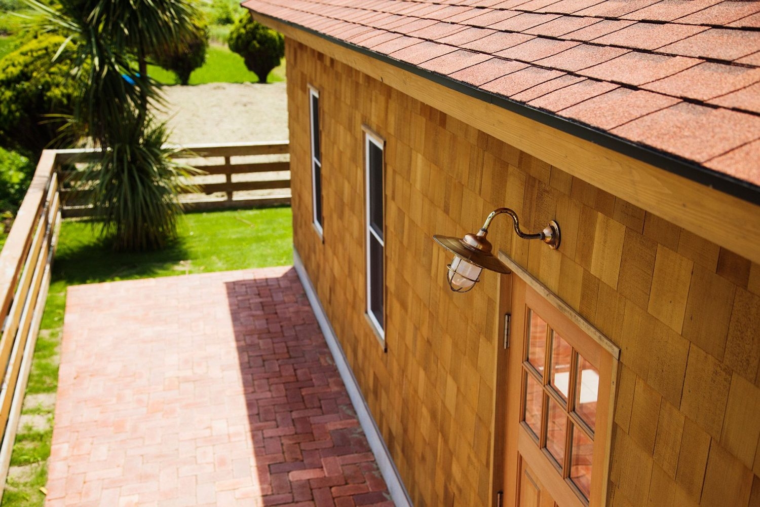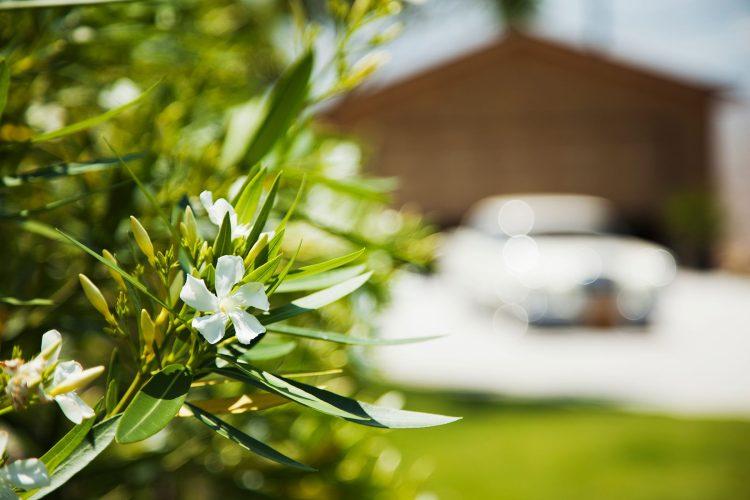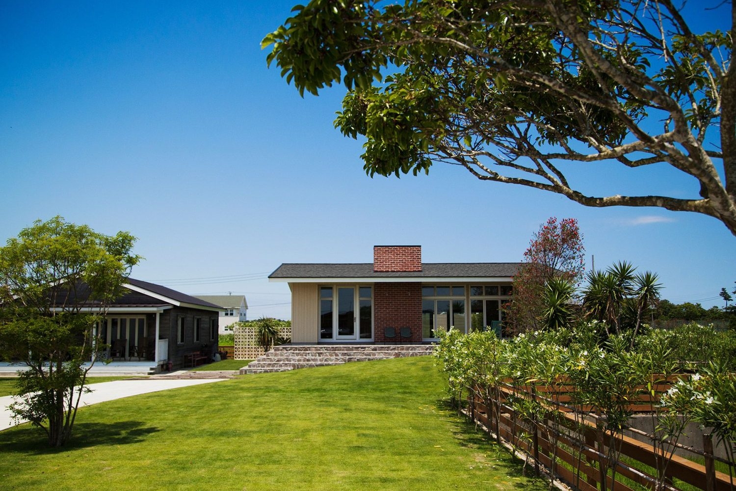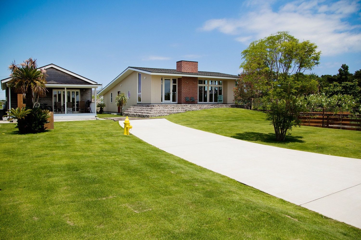 海から約600mに在る芝生敷の440坪の敷地には、ヴィンテージな雰囲気のビーチハウスと木製ガレージも併設。
