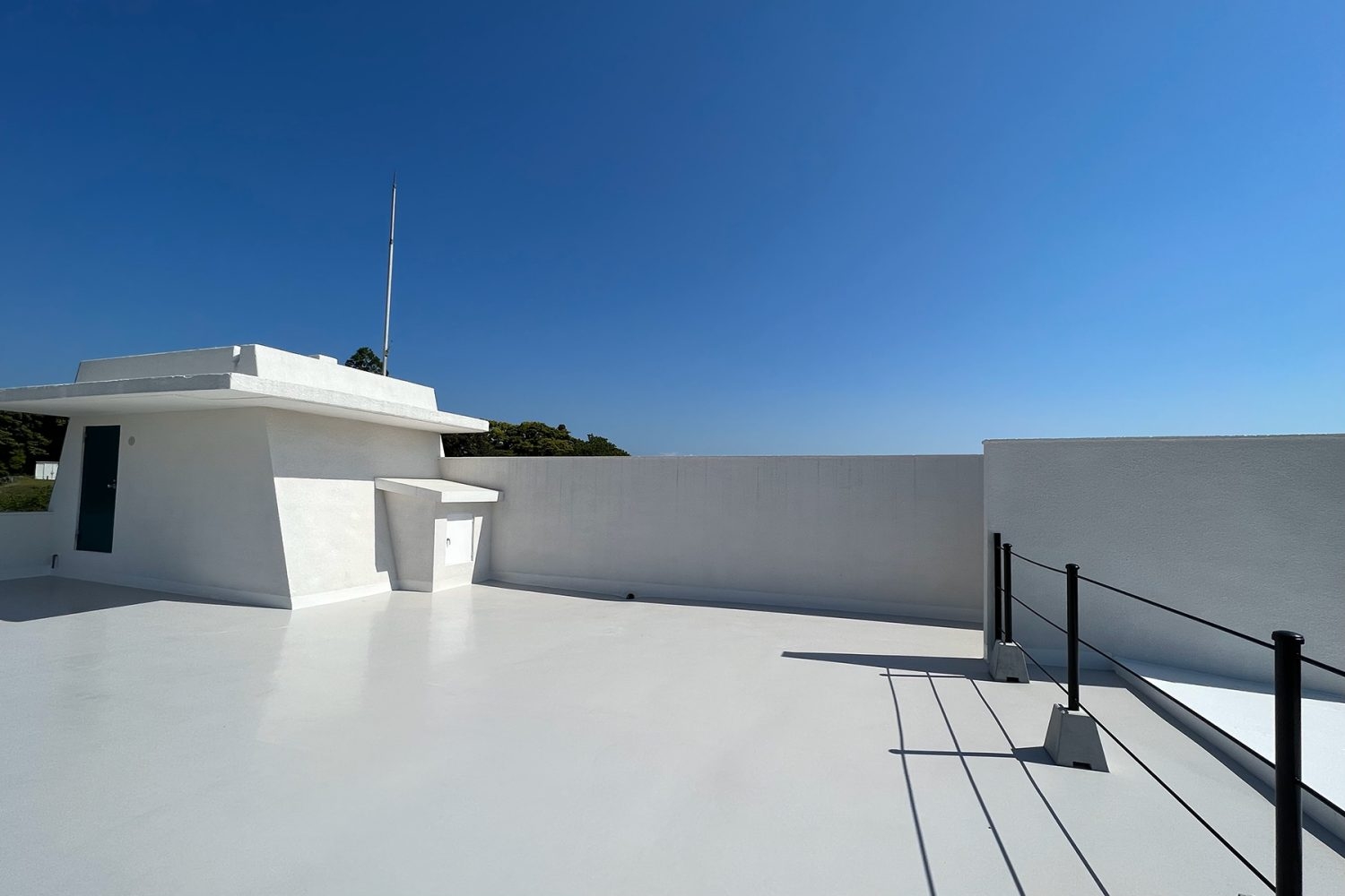 屋上からは青い空、海、山を一望できるので撮影にも最適。季節によってお庭に花も咲いているので、四季が楽しめる場所です。
