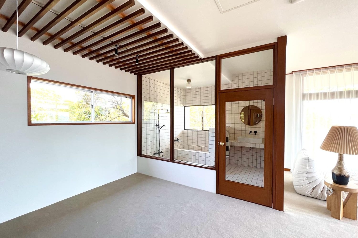 室内は、北欧風のキッチン、お風呂場、ヴィンテージ家具やライトなどで統一感を出したリビング、どこを切り取っても雰囲気のある空間。