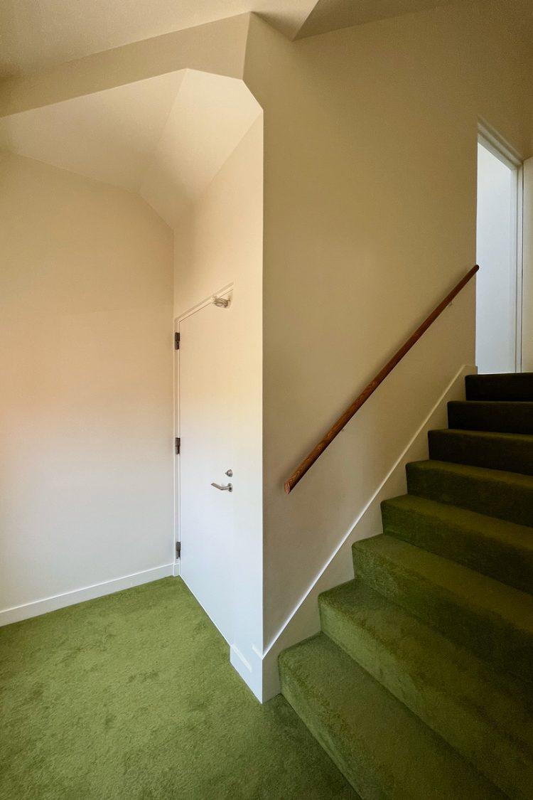 1階から屋上までの階段絨毯は、ブルー、モスグリーン、ブラウン。壁と床にそれぞれ異なる素材を使用しているので、階段だけでさまざまなバリエーションの撮影が可能。