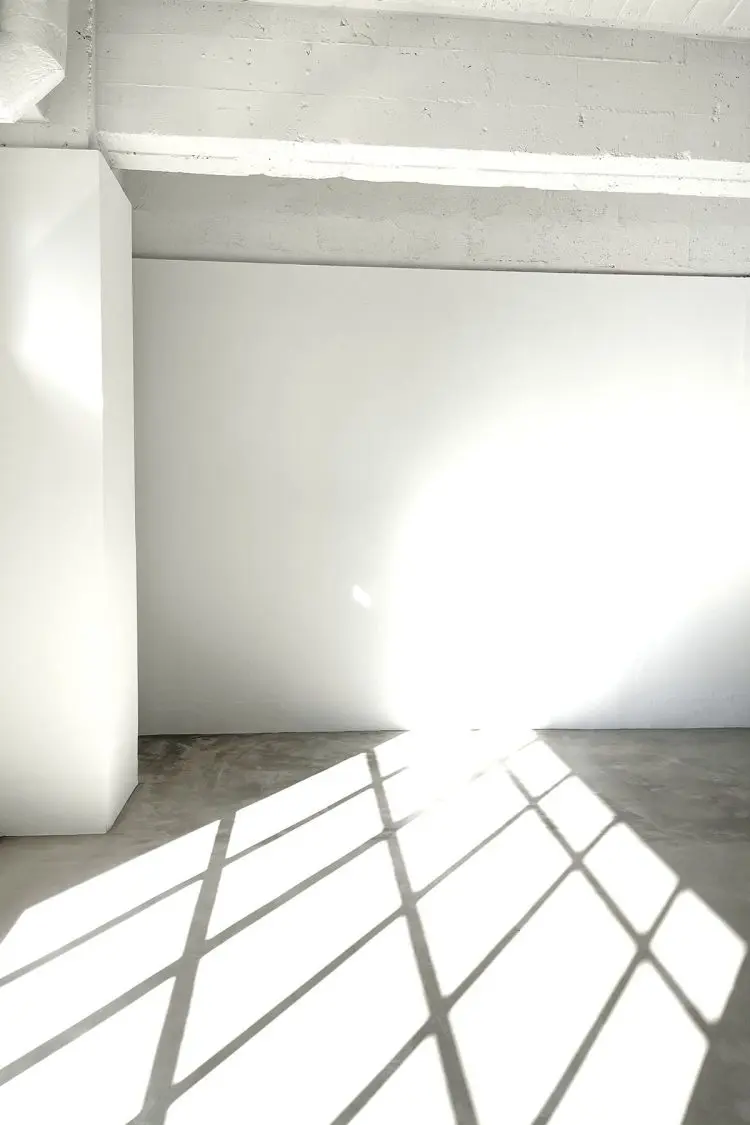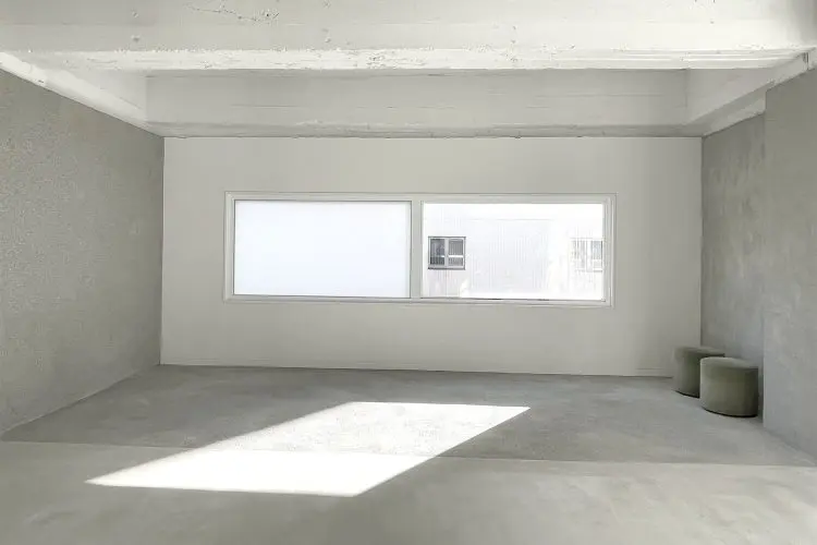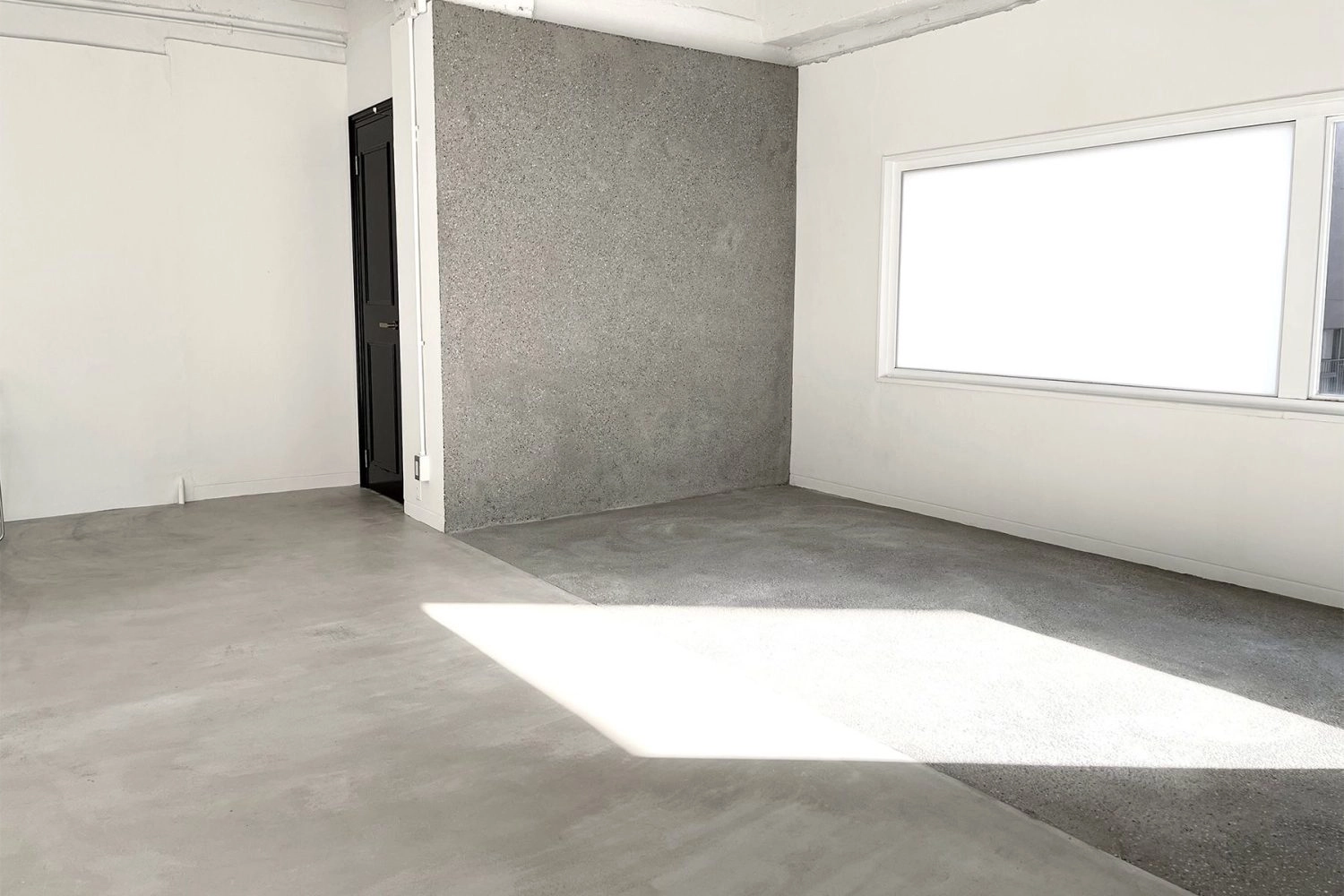 インダストリアルな雰囲気のシンプルな白の空間は、自然光が一日中入ります。