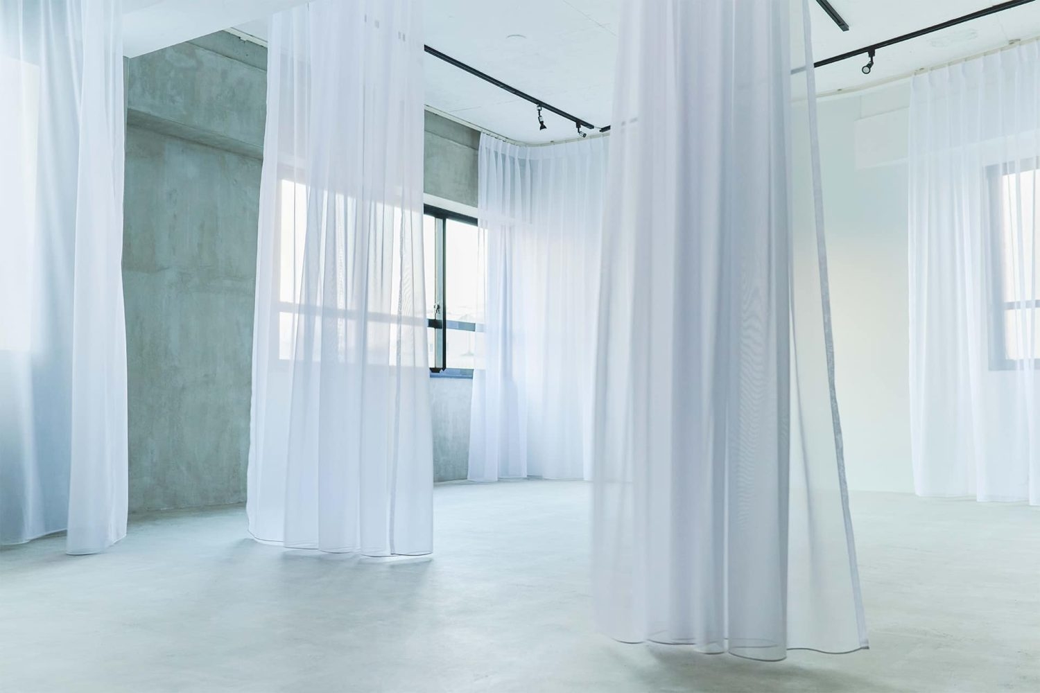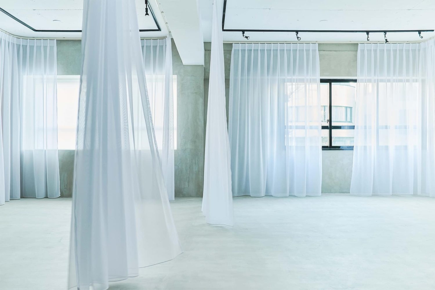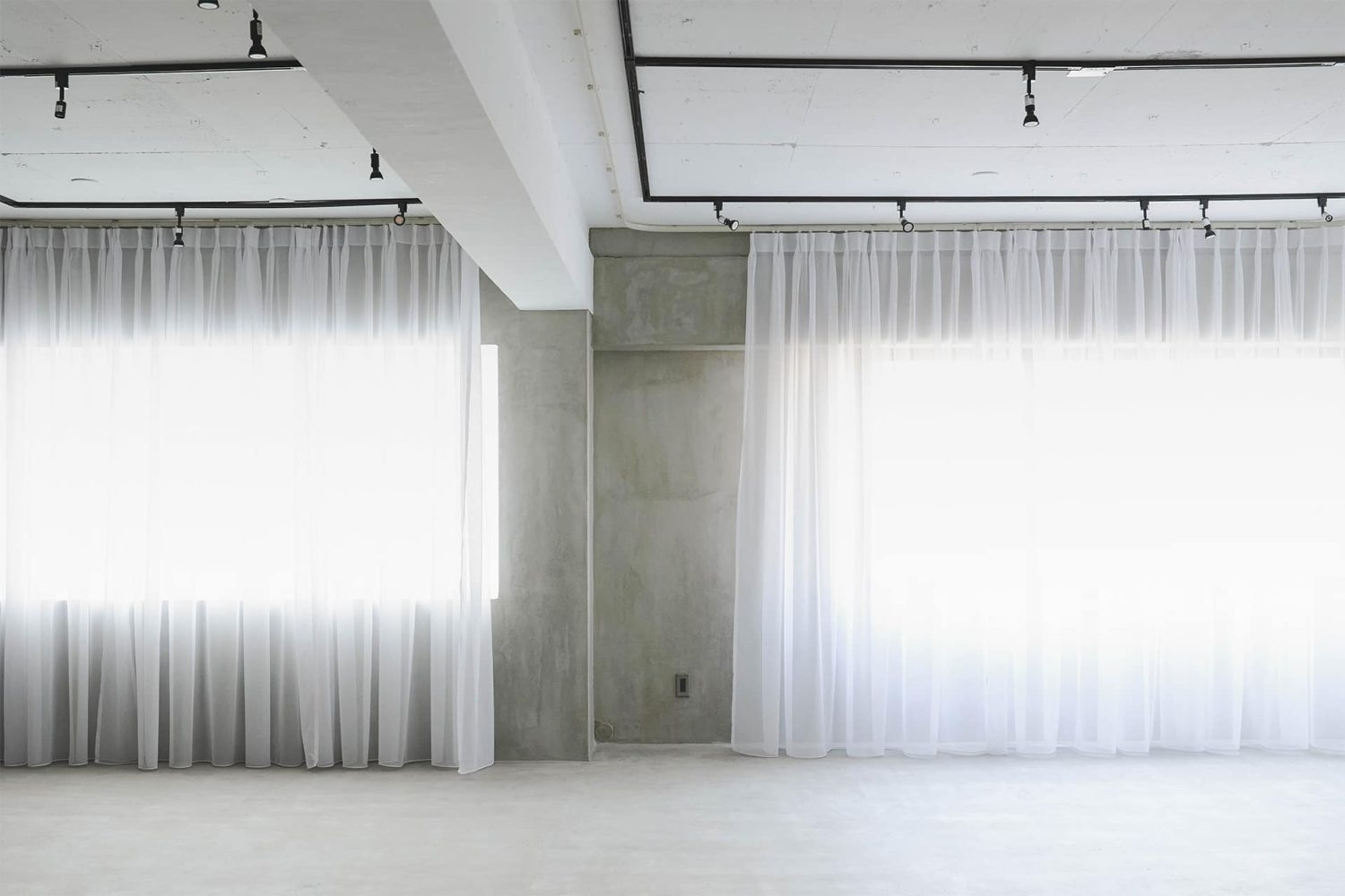 シンプルな空間ながら異なる3種類のマテリアルの壁に加え、レースカーテンの演出により様々なパターンの撮影が可能になります。