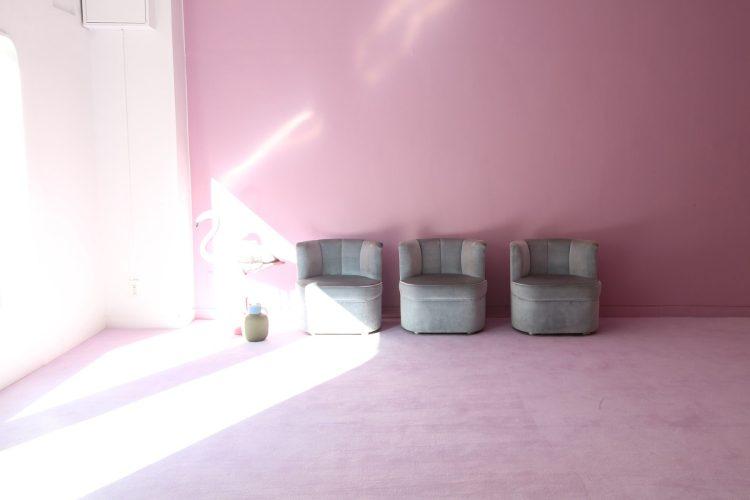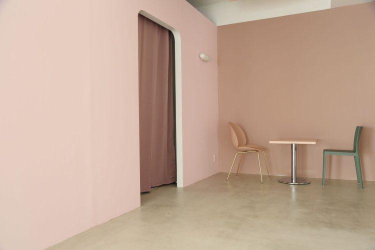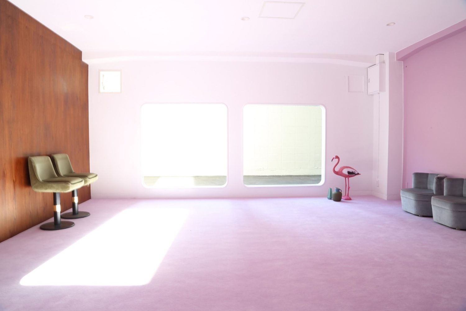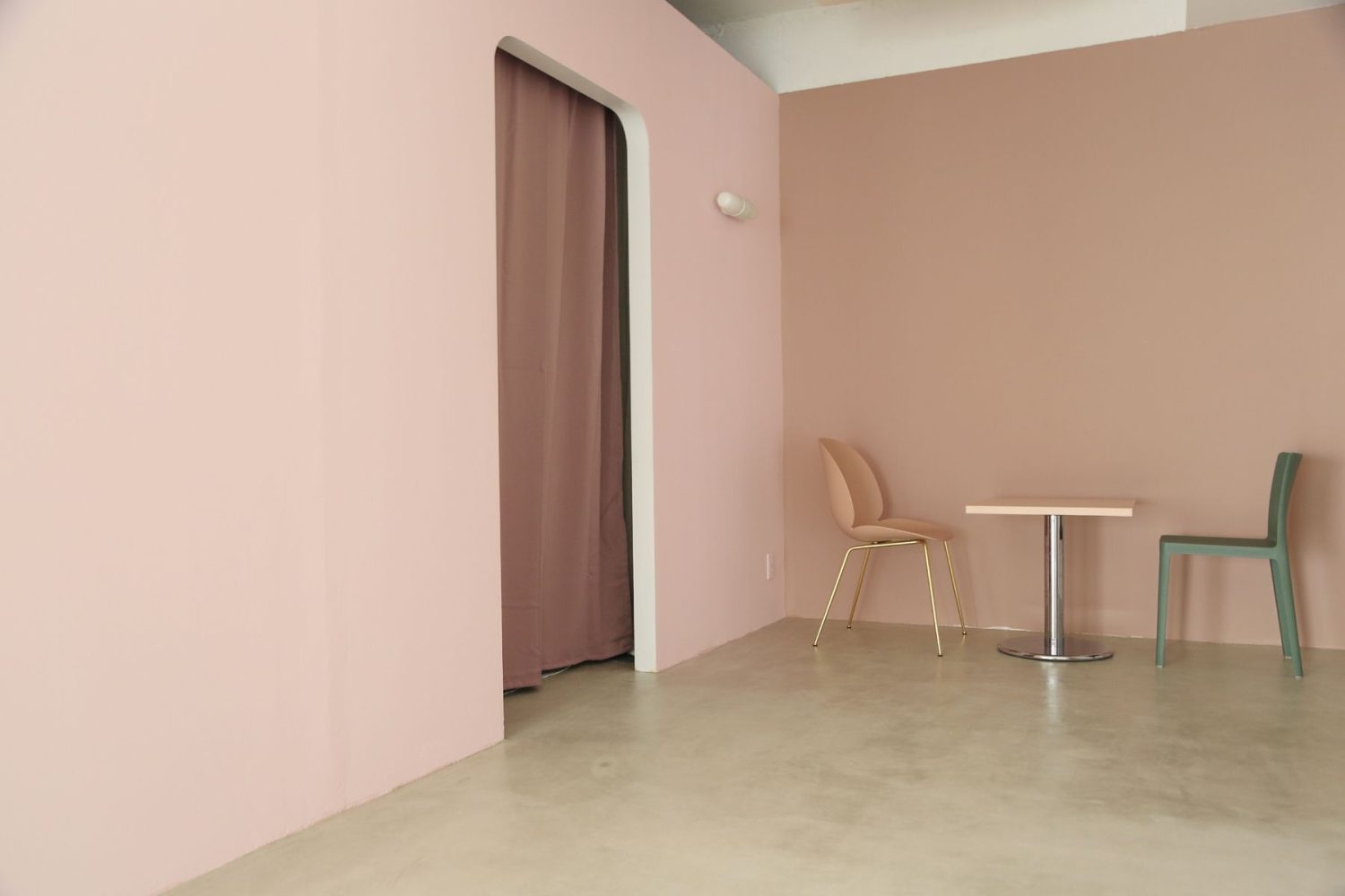 色壁が、ピンク3種類、ミルキーブルー、ミルキーイエロー、ミルキーグリーン、パープル濃淡2色の8色もあるスタジオ。