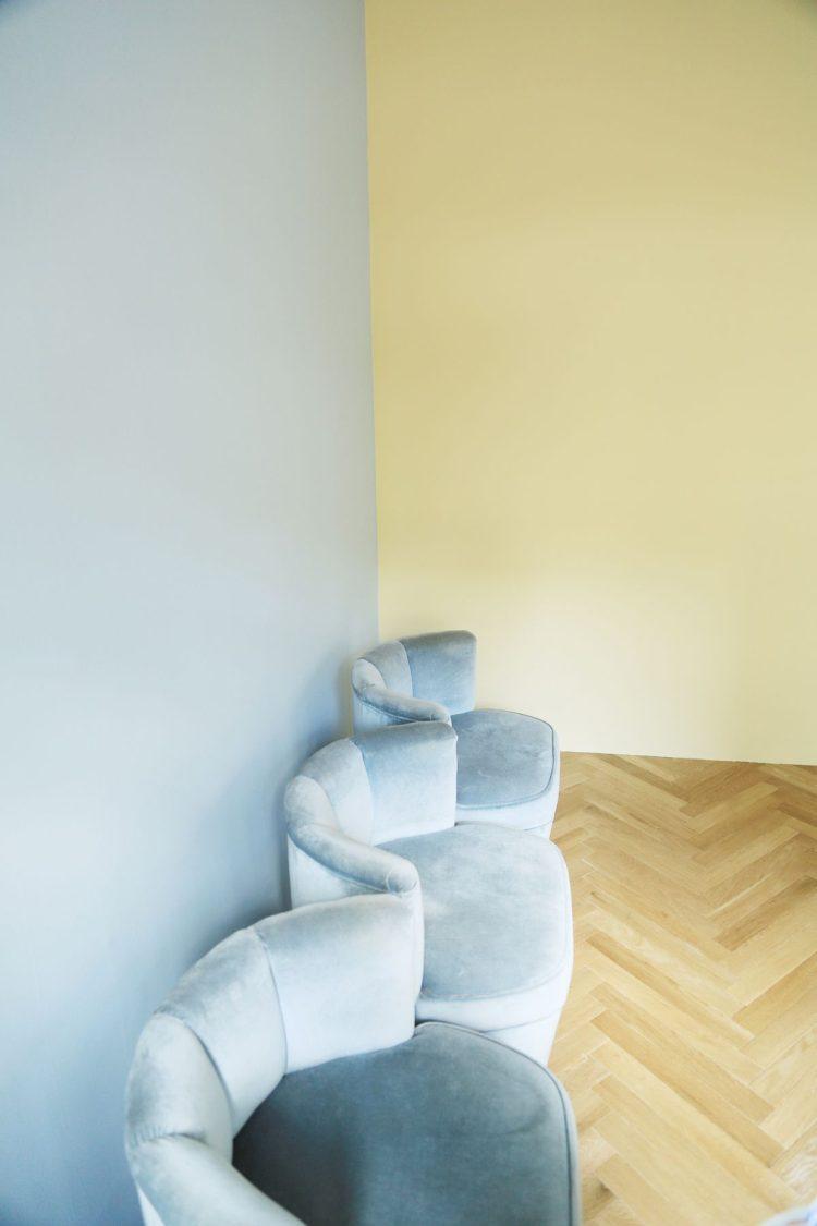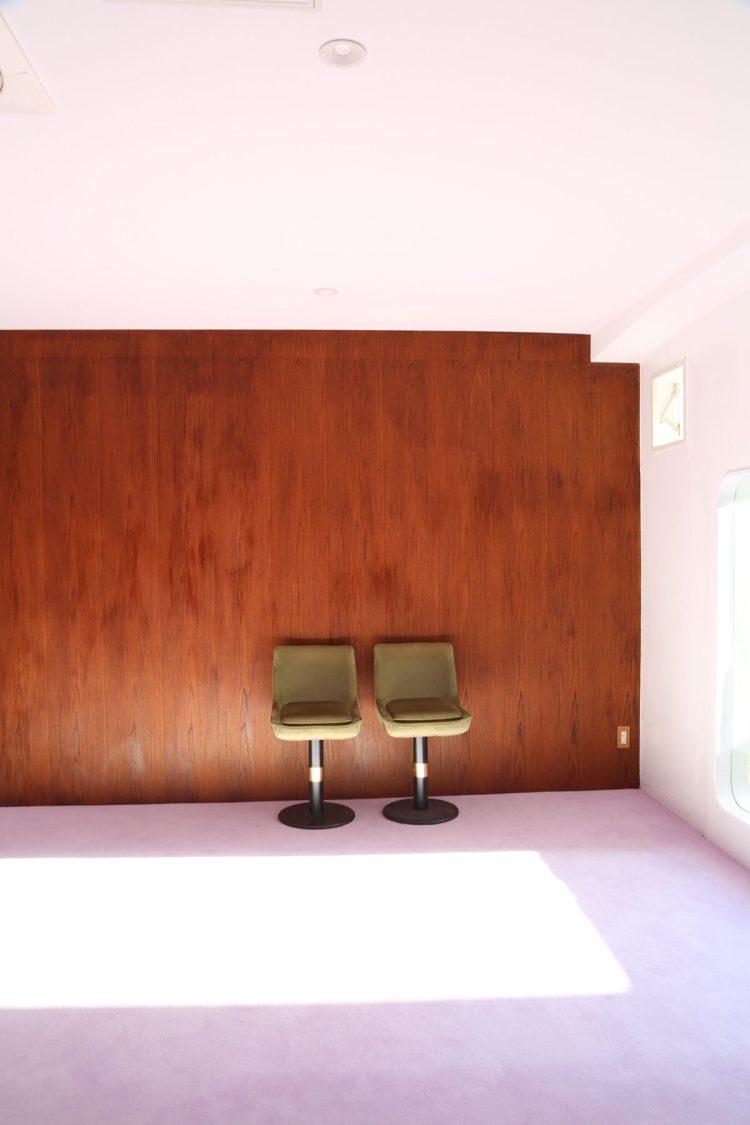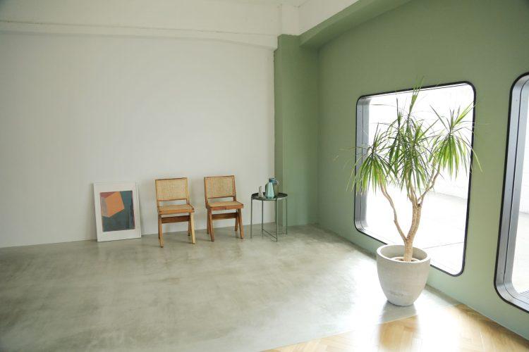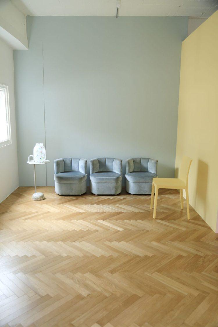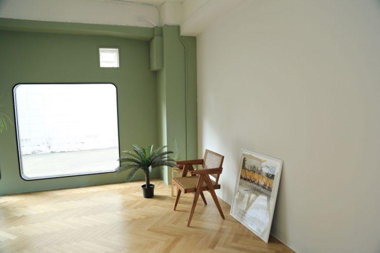 色壁が、ピンク3種類、ミルキーブルー、ミルキーイエロー、ミルキーグリーン、パープル濃淡2色の8色もあるスタジオ。