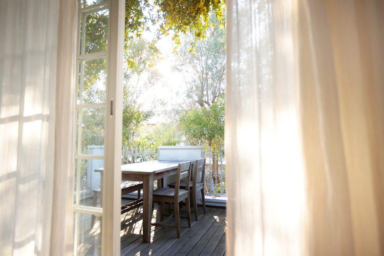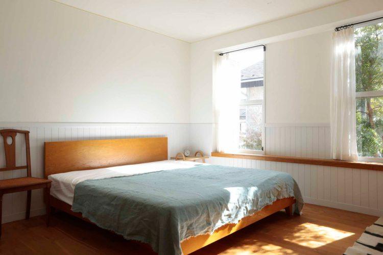 ベッドルームに広がるしんとした気配の中で、まだ眠たいまま外の緑を眺めてボーッとする。