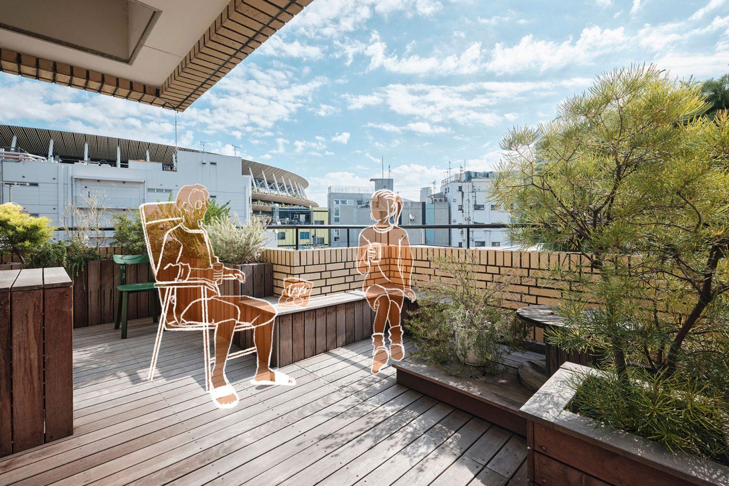 彼女はアイスコーヒー、僕は缶ビールを手にテラスへ。