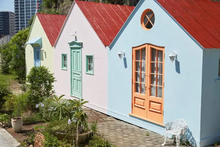 目黒駅から徒歩5分。ひとつうえで紹介した「Old Avenue STUDIO EASE目黒」の並びにある、アメリカンパークのような開放感と遊び心のある街並みを再現した撮影スペースです。パステルカラーの小さな家が3軒並び、教会やサーフショップ風の小屋、横断歩道など、さまざまな演出ができるセットが揃います。Old Avenueと併せて利用できるプランもあり、より広い街並みロケーションを一体で使えるのも大きな魅力。屋外ながらもプライベートに使えるため、ファッション、CM、MVなど、あらゆるジャンルの撮影が叶います。遊び心のあるストーリーシーンを作りたい時におすすめのスタジオです。