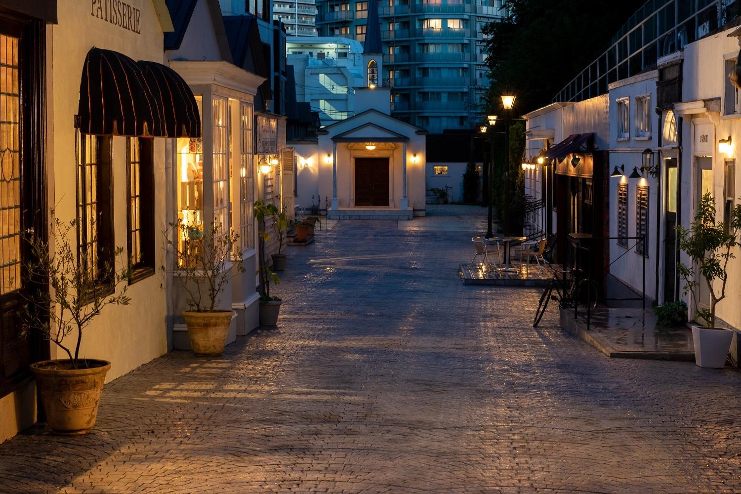 目黒駅から徒歩3分。約610㎡の広大な敷地に、海外のような街並みを再現したロケーションスタジオです。カフェテラスやショーウィンドウの外観が石畳のメインストリートに並び、まるでヨーロッパにいるような空気感が漂います。日没後には街灯が灯り昼間とは違った雰囲気も演出できるので、夜の街を歩くシーンなど、幅を広げたい撮影にも最適です。劇用車の搬入も可能で、通行人を気にすることなくスタジオ内で街中撮影が完結できるのも嬉しいポイント。撮影準備をスムーズに進められるよう、メイクルームや家具、小道具の貸し出しといったサポートも充実しています。都会のど真ん中でありながら、背景の選択肢も豊富で「街並みとしての撮影」が求められるケースにぴったりのスタジオです。