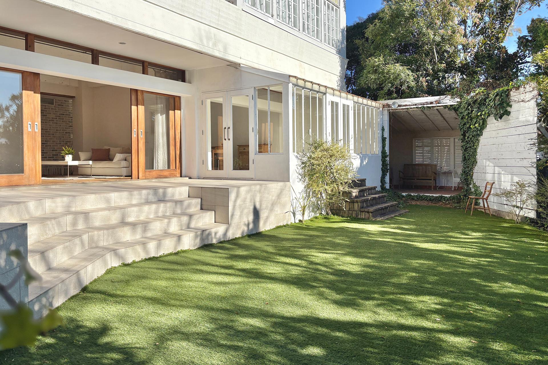 1階のリビング、キッチン、サンルームは庭に面しており、南向きの窓から自然光が差し込みます。サンルームの折れ戸を全開にすれば、室内と庭がシームレスに繋がることが可能です。庭の一角には、アンティークのテラコッタを敷きつめたスペースがあり、公園のようなシチュエーションで撮影も可能。