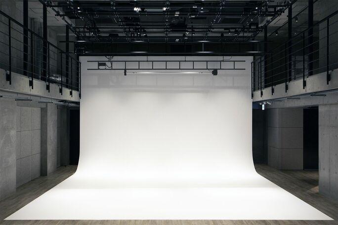 263㎡天高4.5mの広々とした空間で車を直接入れて撮影も可能です。天井の照明バトンや窓パネル裏には、照明が設置できるため、雨や日没後でも自在に安定した光を作れます。スタジオ、屋上、控室ともに有線・無線LANのご利用が可能です。幅12mの白壁には高さ3mの開口が左右にあり、ステージ的演出も叶います。