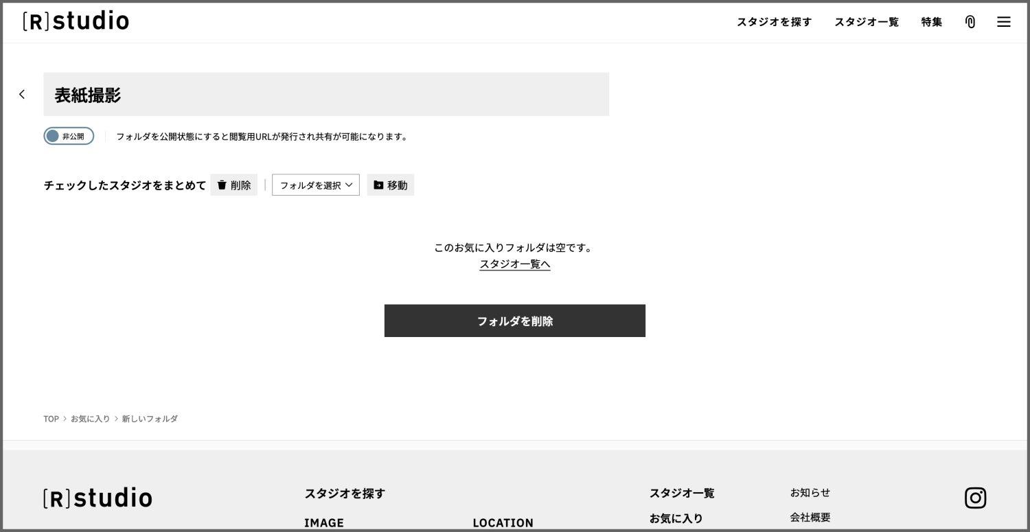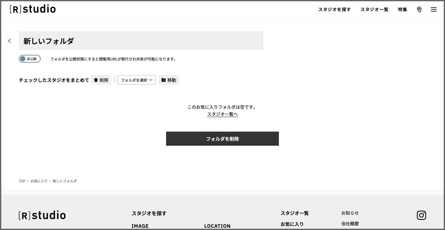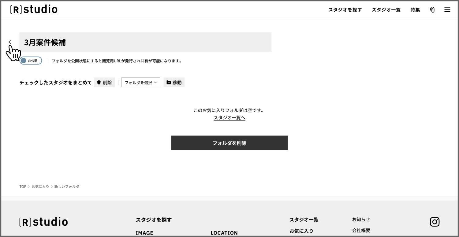 お気に入りに登録したスタジオをフォルダから削除したい場合