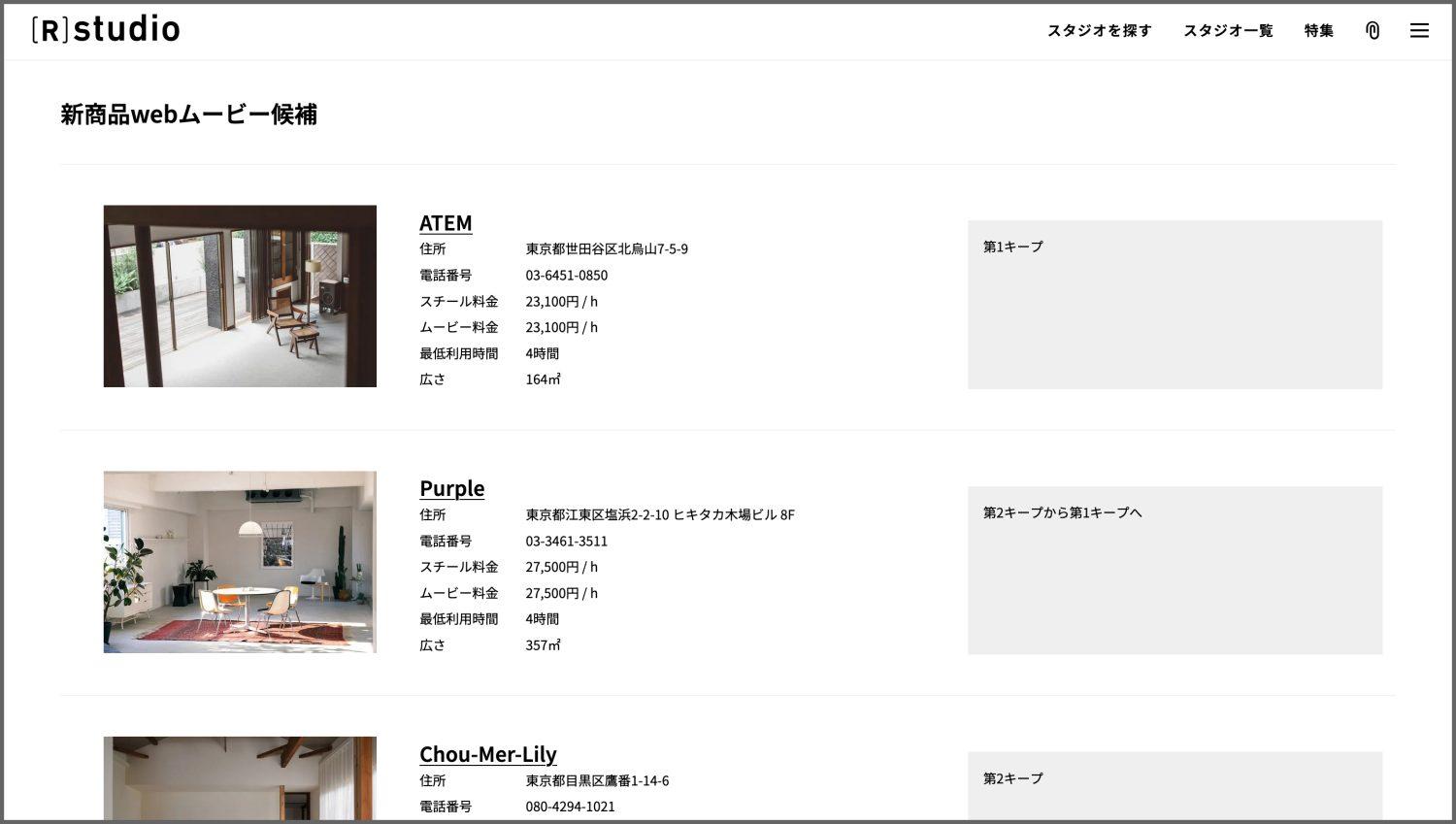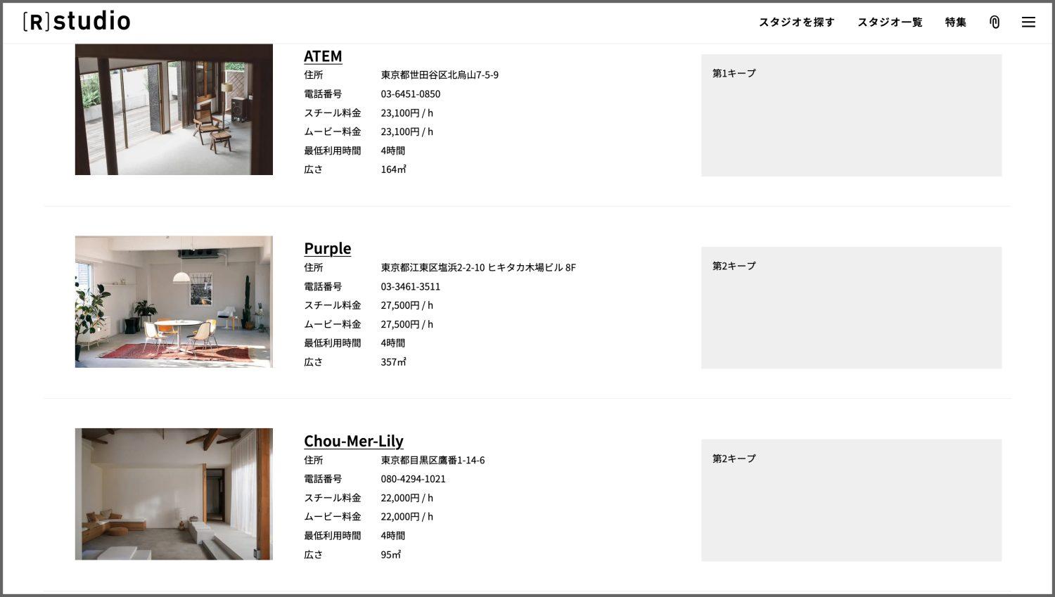 ①スタジオ詳細ページ。