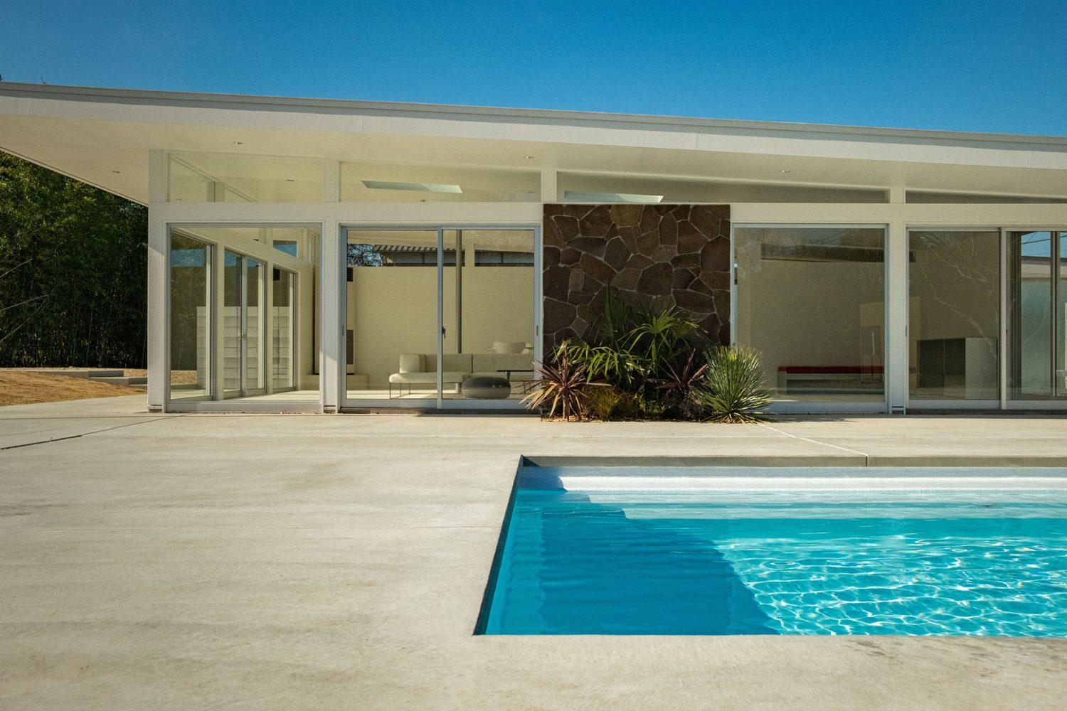 バタフライルーフの外観はカリフォルニアを彷彿とさせます。車のまま入り込めるモーテルエントランスやプールを備えており、異国情緒あふれる空間。海から徒歩1分のため、海でのロケーション撮影と併せての利用もおすすめです。