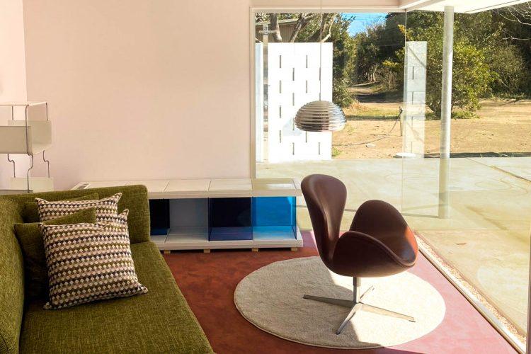 シンプルながらユニークなデザインの家具が揃うメインの空間と、カラーが豊富に取り入れられたポップな印象の空間に分かれています。余白を設けて配置されたインテリアからも、ミッドセンチュリースタイルの余裕が感じられます。広々とした敷地内にあるガレージでは、車を乗り入れたり、アプローチを走る様子を撮影することも可能です。車で7分で海にも行けるので、九十九里浜でのロケーション撮影との組み合わせもおすすめです。
